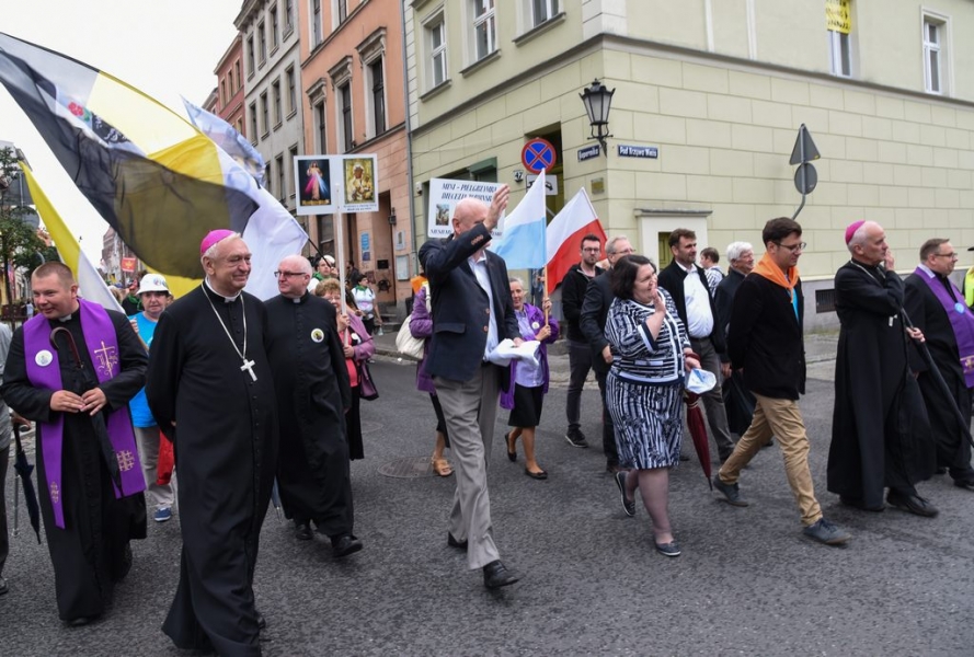 4 sierpnia 2016 r. spod katedry śś. Janów wyruszyła 38. Piesza Pielgrzymka Diecezji Toruńskiej na Jasną Górę. O godz. 6.00 Biskup Toruński odprawił w katedrze śś. Janów nabożeństwo, po którym tradycyjnie wzdłuż ul. Kopernika uformowała się kolumna marszowa i pątnicy wyruszyli przez most drogowy na pielgrzymkowy szlak, odprowadzani przez duchowieństwo, władze miasta i województwa. Hasło tegorocznej pielgrzymki brzmi: „Miłosierni jak Maryja”. Fot. Lech Kamiński