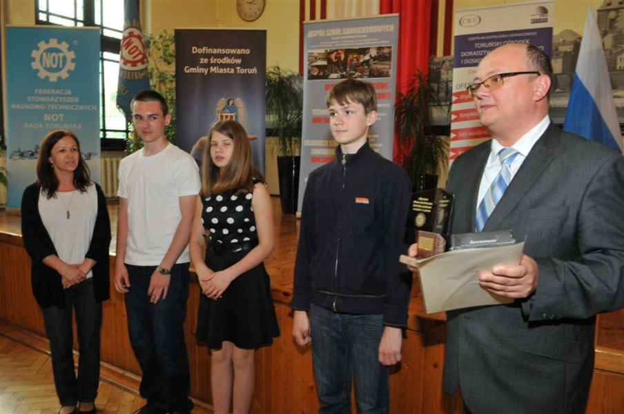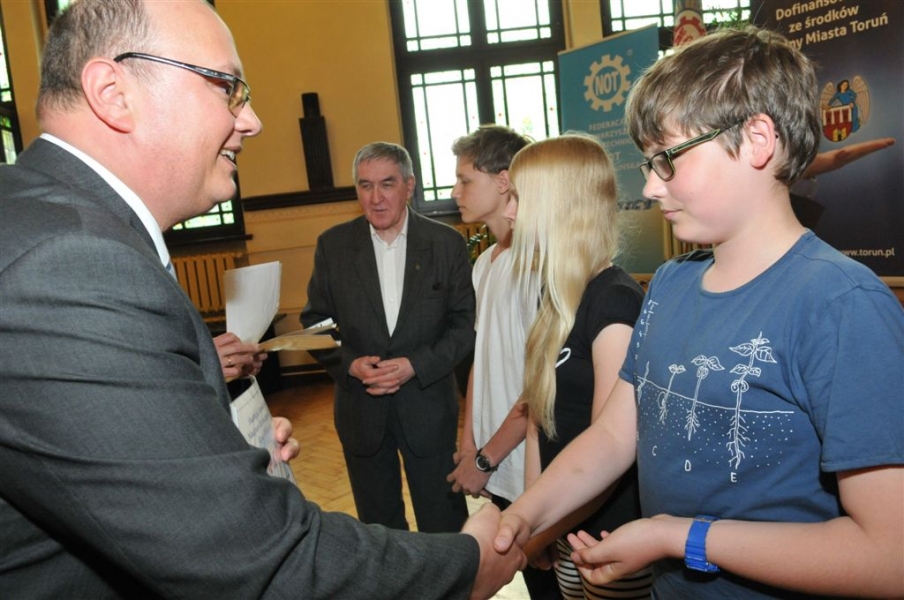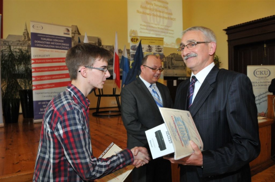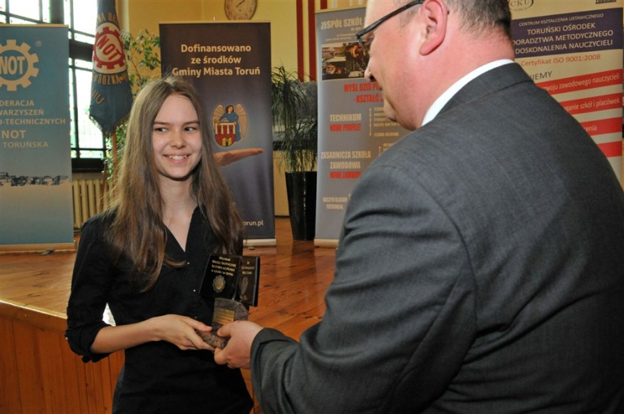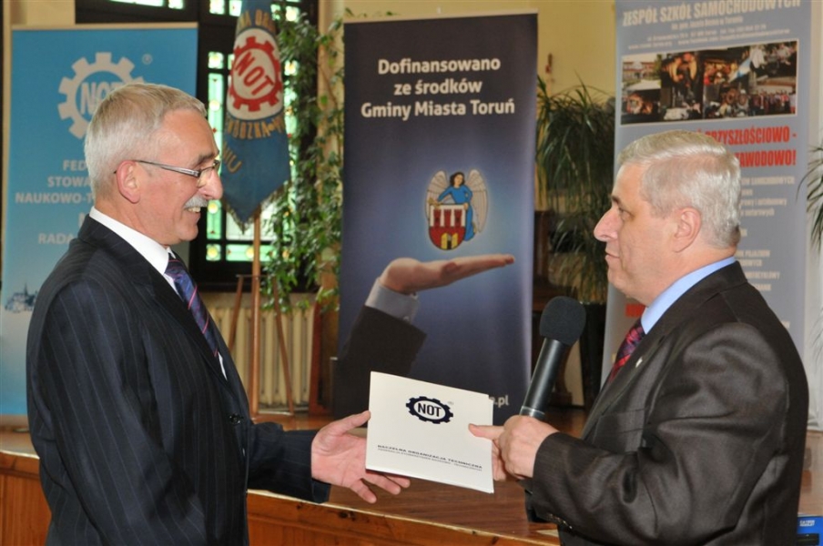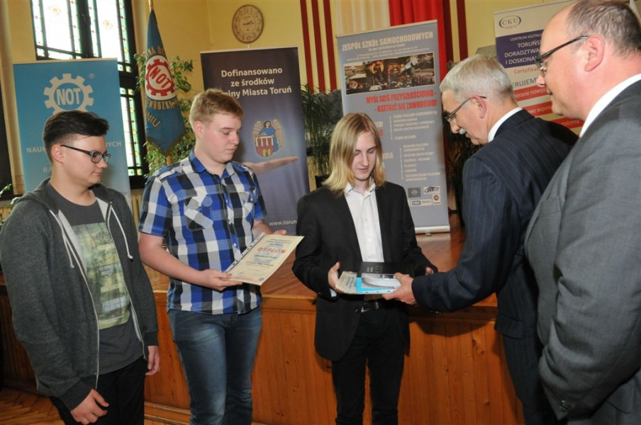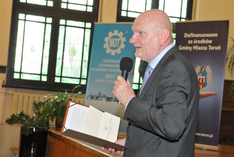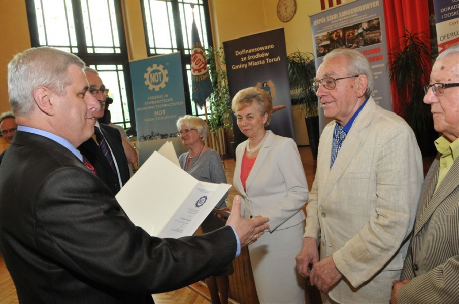 W auli Centrum Kształcenia Ustawicznego w Toruniu 11 maja 2016 r. odbyła się uroczystość z okazji inauguracji Dni Techniki i 55. rocznicy działalności Rady Toruńskiej Federacji Stowarzyszeń Naukowo-Technicznych NOT. Była to okazja do uhonorowania zasłużonych działaczy toruńskiego NOT i osób wspierających toruńskie środowisko naukowo-techniczne. Wręczono też nagrody w V edycji konkursu wiedzy technicznej dla uczniów szkół gimnazjalnych w Toruniu "Technika użytkowa w szkole i w domu". Fot. Małgorzata Litwin