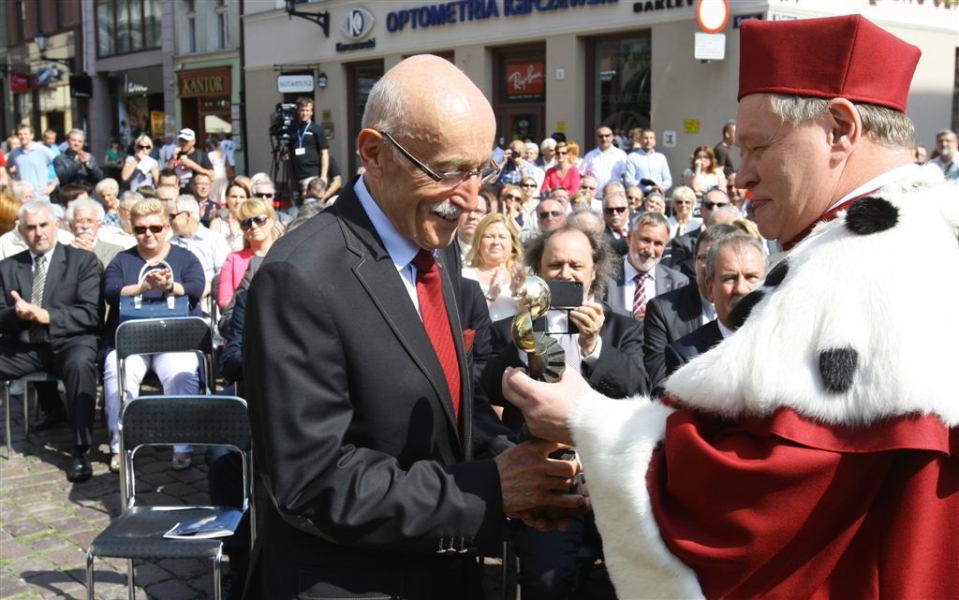 Uroczysta sesja Senatu UMK pod pomnikiem Kopernika, jazzowy pochód z Bielan na starówkę, koncerty na plenerowej scenie i otwarcie wystawy bezcennych woluminów ze Srebrnej Biblioteki Hohenzollernów uczciły 14 czerwca 2015 r. jubileusz 70-lecia Uniwersytetu Mikołaja Kopernika. Fot. Adam Zakrzewski