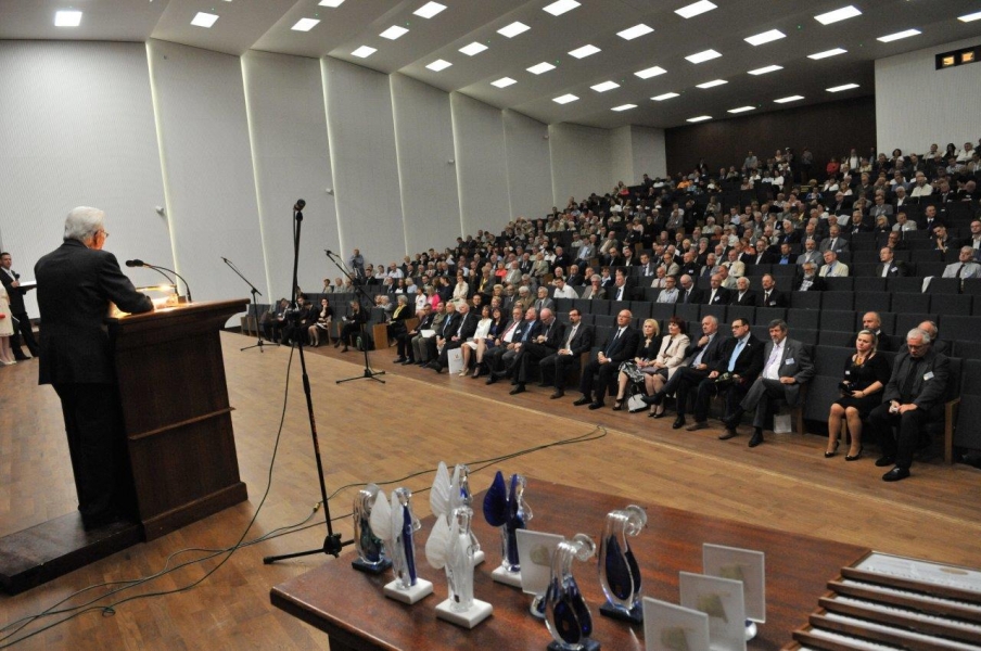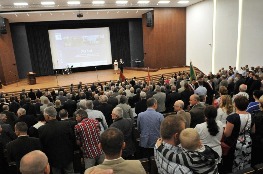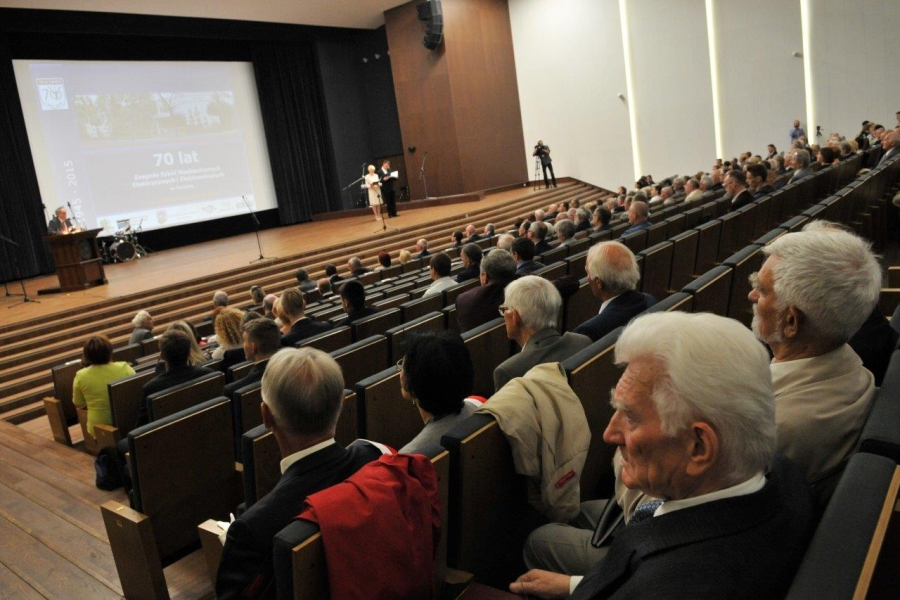 70 lat istnieje już w Toruniu szkoła techniczna, która nosi dziś nazwę: Zespół Szkół Mechanicznych, Elektrycznych i Elektronicznych. Uroczystości jubileuszowe 20 czerwca2015 r. zgromadziły w auli UMK byłych i obecnych uczniów i nauczycieli oraz pracowników zasłużonej placówki. Dla gości uroczystości wystąpił zespół Młody Toruń. Fot. Małgorzata Litwin