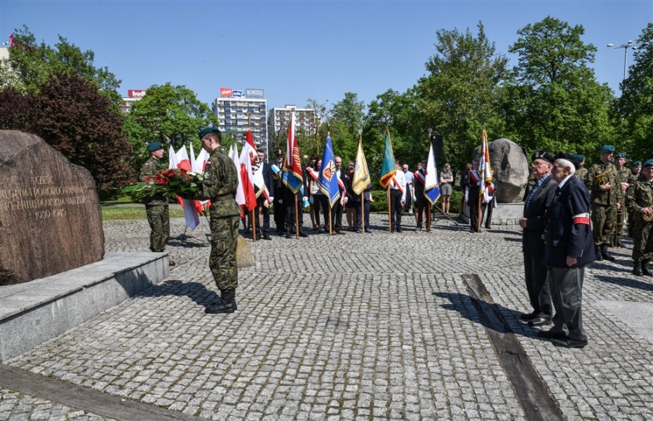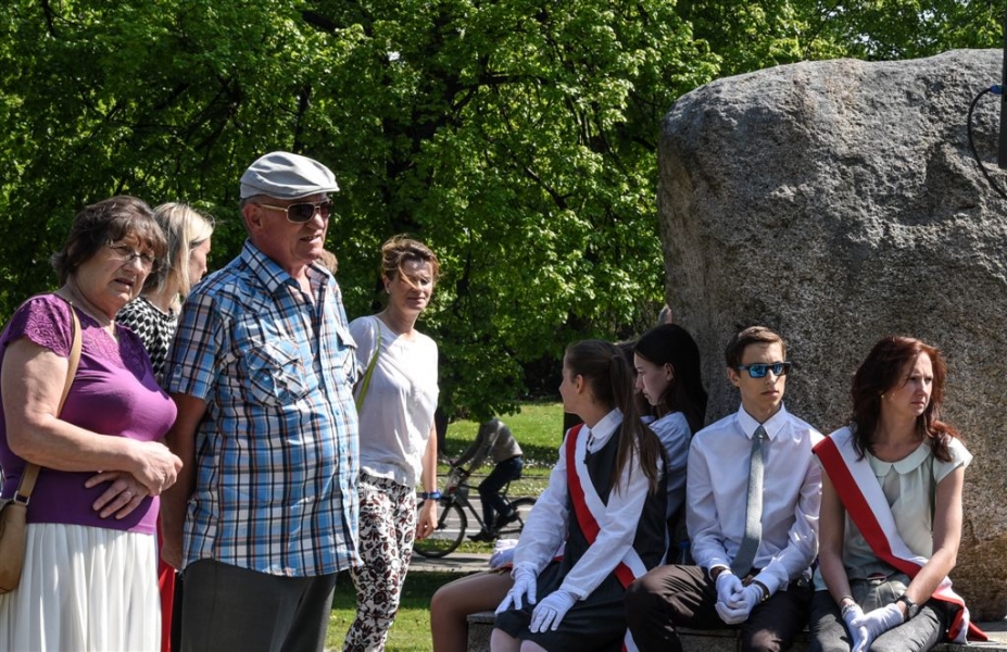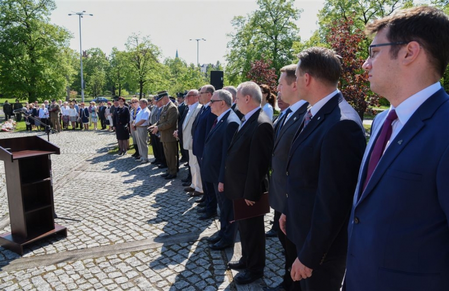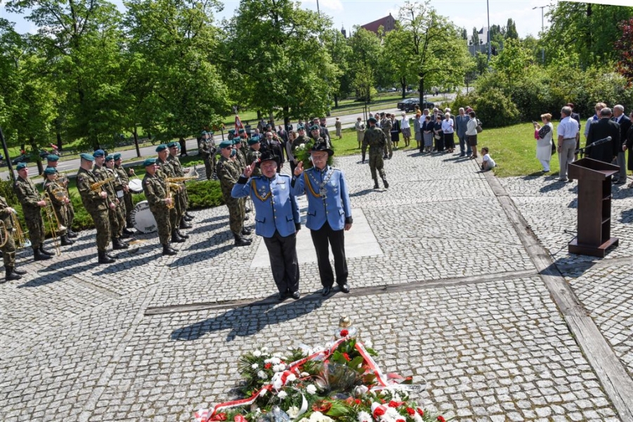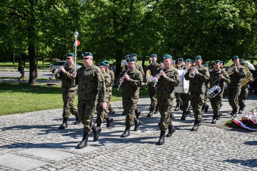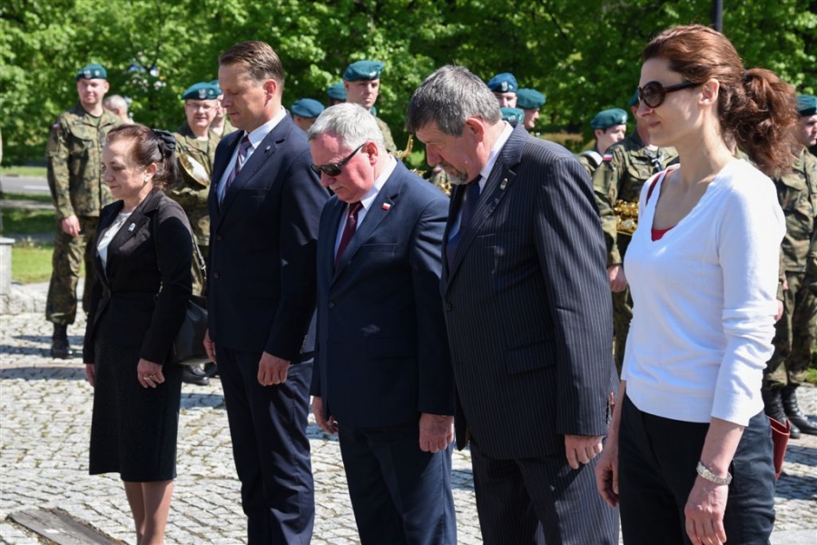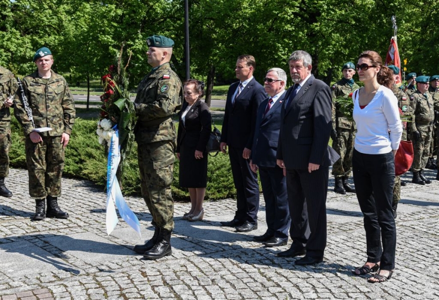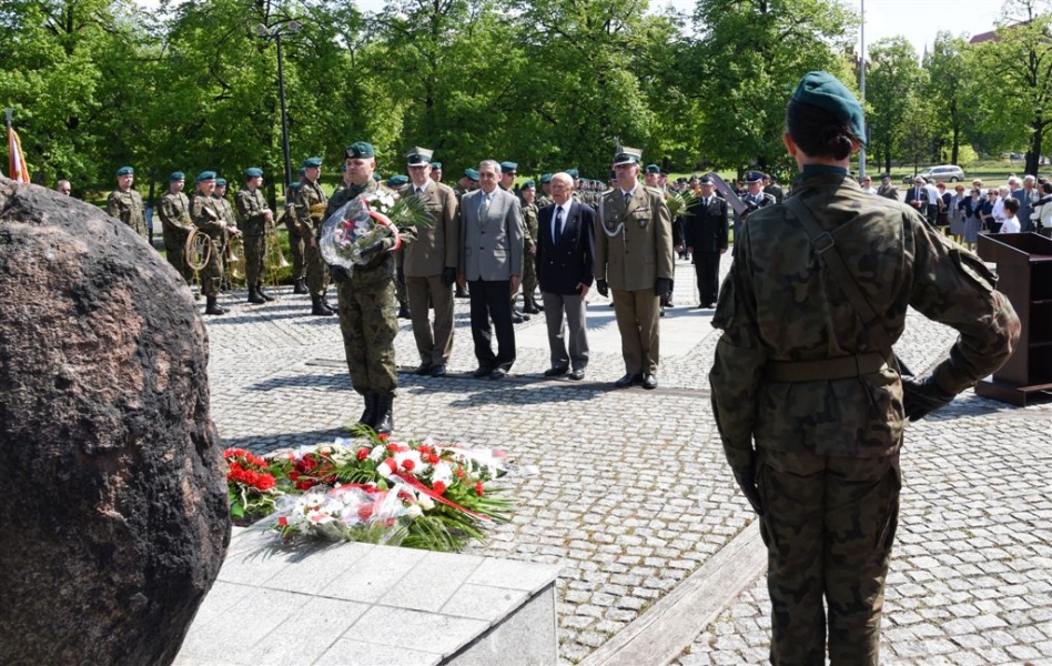 8 maja 2016 r. pod pomnikiem "Ku czci poległych i pomordowanych przez hitlerowskiego najeźdźcę w latach 1939-1945" w Toruniu odbyły się uroczystości z okazji 71. rocznicy zakończenia II wojny światowej. Fot. Lech Kamiński