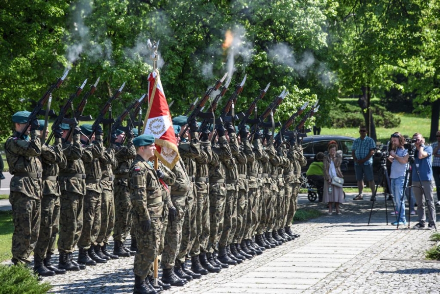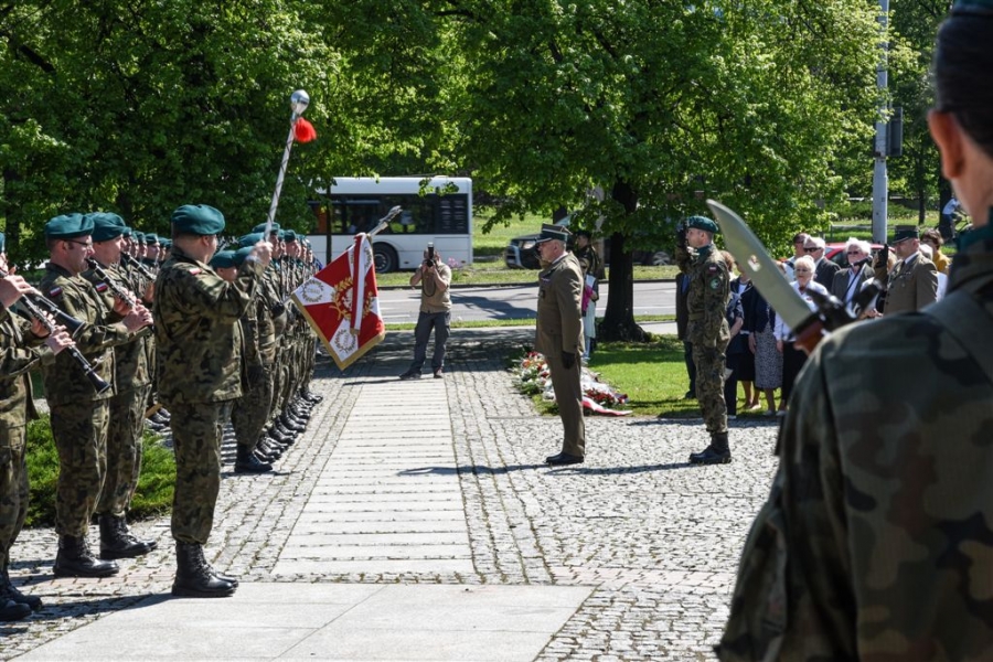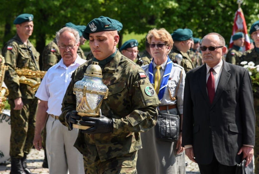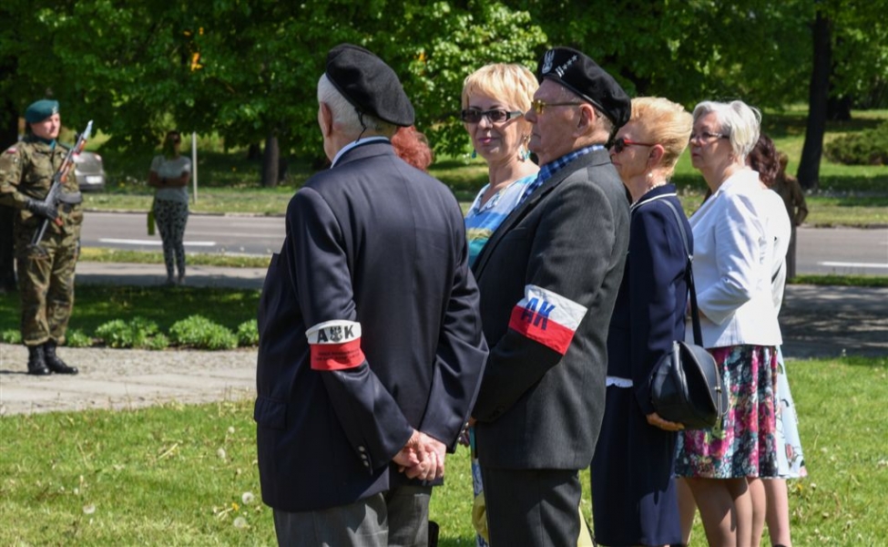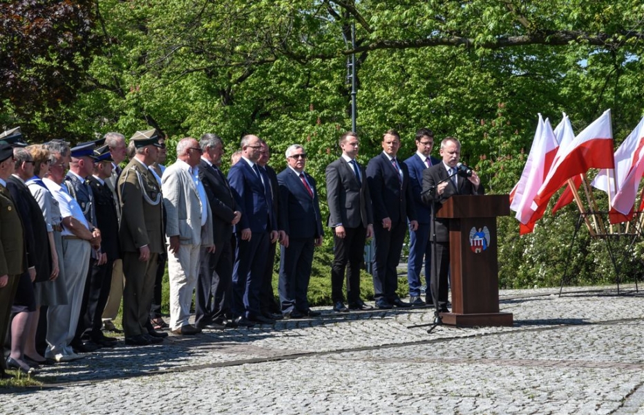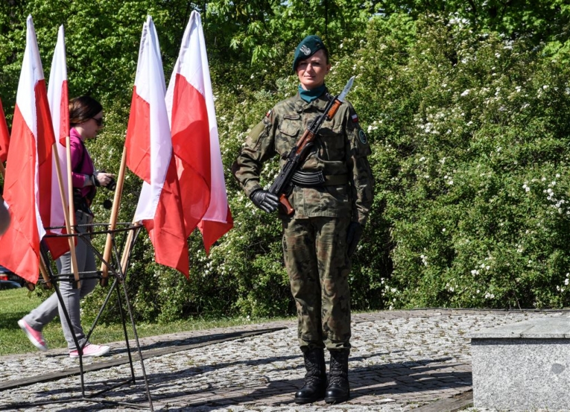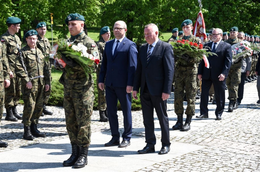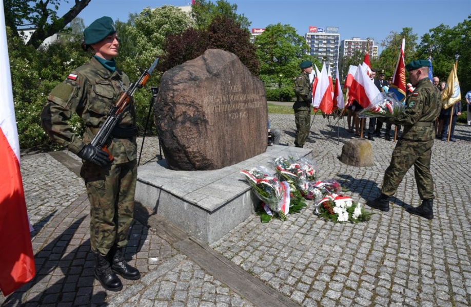 8 maja 2016 r. pod pomnikiem "Ku czci poległych i pomordowanych przez hitlerowskiego najeźdźcę w latach 1939-1945" w Toruniu odbyły się uroczystości z okazji 71. rocznicy zakończenia II wojny światowej. Fot. Lech Kamiński
