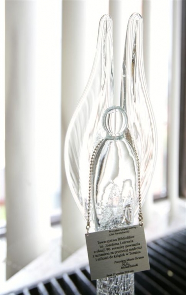 17 września 2016 r. jubileusz 90-lecia świętowało Towarzystwo Bibliofilów im. J. Lelewela w Toruniu. Z okazji jubileuszu jego członkowie spotkali się na uroczystym spotkaniu w Bibliotece Uniwersyteckiej. Miasto reprezentowali zastępca skarbnika Mariusz Szczubiał i Zbigniew Derkowski, dyrektor Wydziału Kultury. Z ich rąk prezes Anna Bogłowska otrzymała list gratulacyjny, statuetkę Szklanego Anioła oraz oczywiście książkę - kopię faksymilową „Atlas Coelestis In qou Mundus Spectabilis” Johanna Gabriela Doppelmayra (1677-1750 r.), wydanego w roku 1742 w oficynie Johanna Homanna w Norymberdze. Fot. Adam Zakrzewski