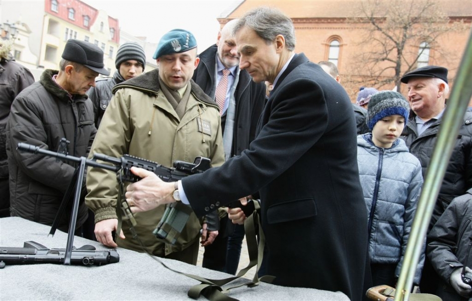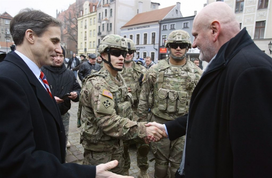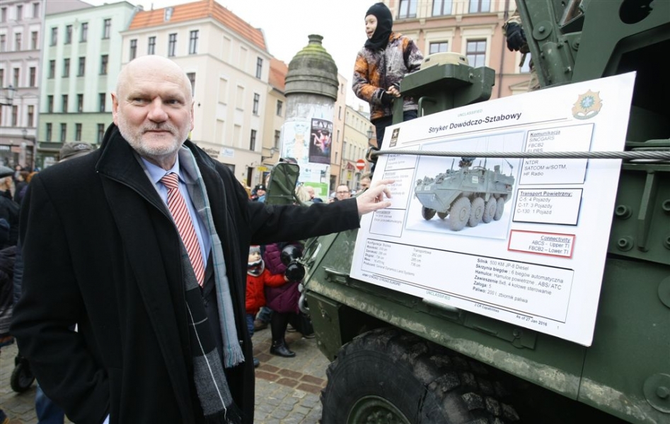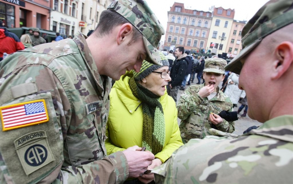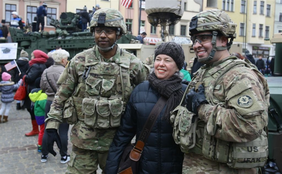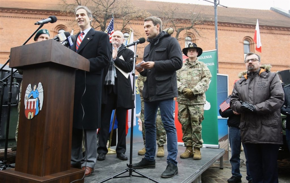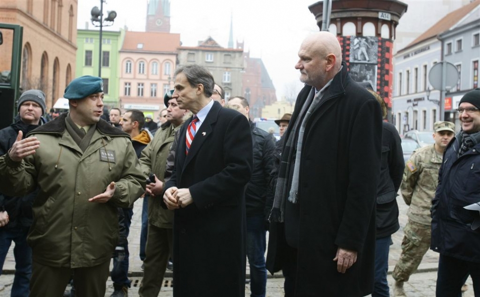 6 lutego 2016 r. w Toruniu gościł ambasador USA Paul Jones i żołnierze z sił NATO, przebywający w Polsce w ramach ćwiczeń „Dragoon Shock”. 5-13 lutego ćwiczą z użyciem artylerii na terenie Centrum Szkolenia Artylerii i Uzbrojenia w Toruniu. W sobotę, 6 lutego spotkali się z mieszkańcami Torunia na Rynku Nowomiejskim. Była okazja do obejrzenia z bliska amerykańskiego sprzętu wojskowego, w tym haubic M777, Humvee oraz pojazdów wspierających. Fot. Adam Zakrzewski
