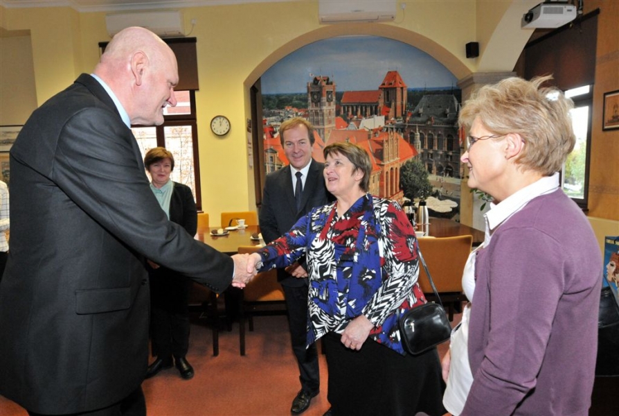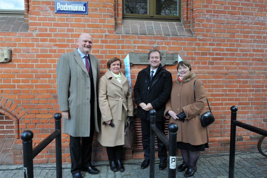 Na budynku Urzędu Miasta Torunia 3 listopada 2016 r. została odsłonięta tablica o zawarciu w maju 2016 r. partnerstwa między Toruniem a francuskim Angers. Dołączyła w ten sposób do dziesięciu innych, dokumentujących kontakty Torunia z miastami bliźniaczymi na całym świecie. Odsłonięcia dokonali prezydent Torunia Michał Zaleski i zastępca mera Angers Michelle Moreau. Fot. Małgorzata Litwin