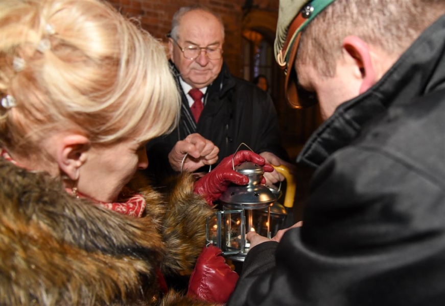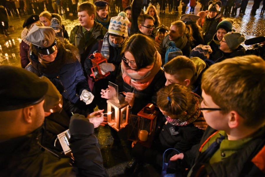 Do Torunia dotarło Betlejemskie Światło Pokoju. 16 grudnia 2015 r. harcerze przekazali je mieszkańcom. Uroczystość przekazania symbolicznego ognia, który do Torunia wędrował przez całą Europę z groty w Betlejem, odbyła się na Rynku Staromiejskim. Dzięki harcerskiej tradycji co roku Betlejemskie Światło trafia do wielu toruńskich domów, instytucji publicznych, szpitali i domów opieki, niosąc w świat wigilijne przesłanie pokoju i nadziei. Fot. Lech Kamiński