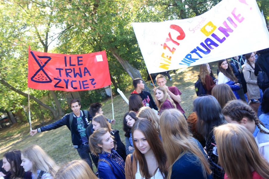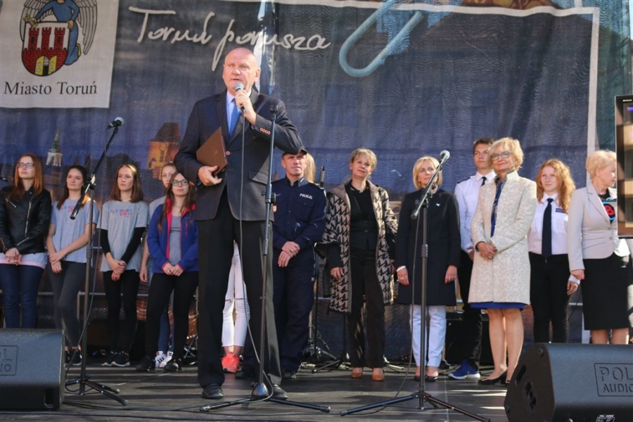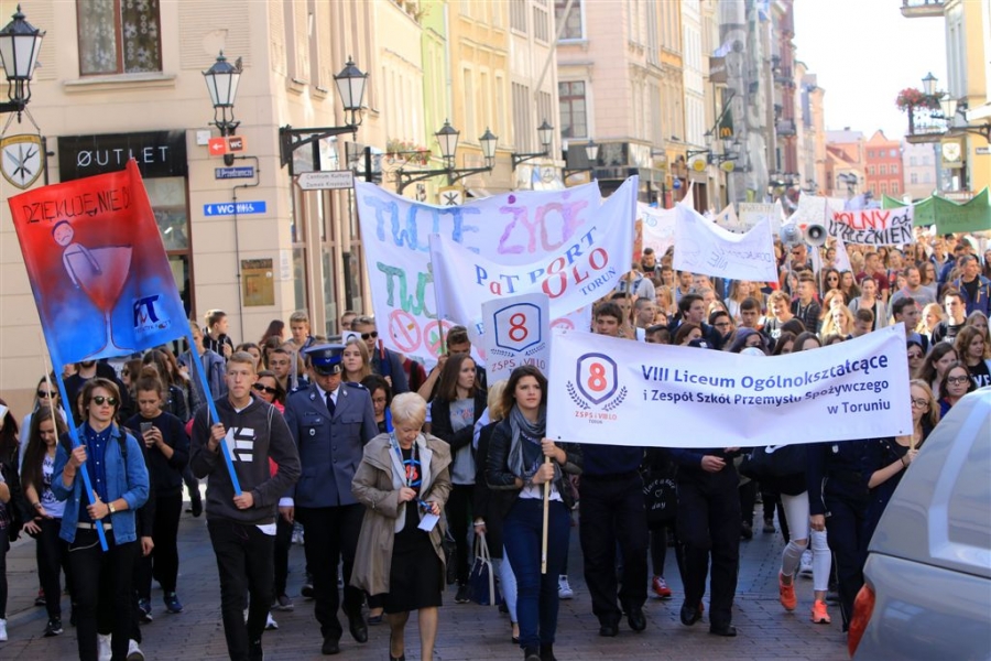 Pod hasłem "Bezpieczny rok szkolny" 27 września 2016 r. w Toruniu odbył się marsz i happening edukacyjno-profilaktyczny. Uczniowie Zespołu Szkół Przemysłu Spożywczego i VIII LO oraz zaproszeni przez nich rówieśnicy promowali zdrowy styl życia i modę na życie bez uzależnień. W Domu Harcerza odbyło się seminarium "Partnerstwo na rzecz bezpieczeństwa i profilaktyki". Fot. Sławomir Kowalski, Sławomir Załeński