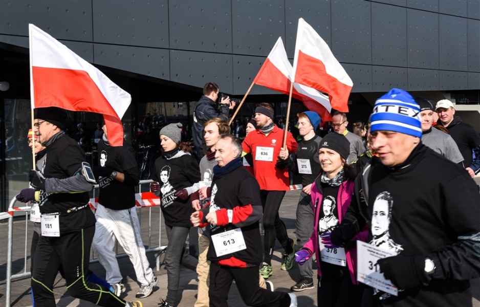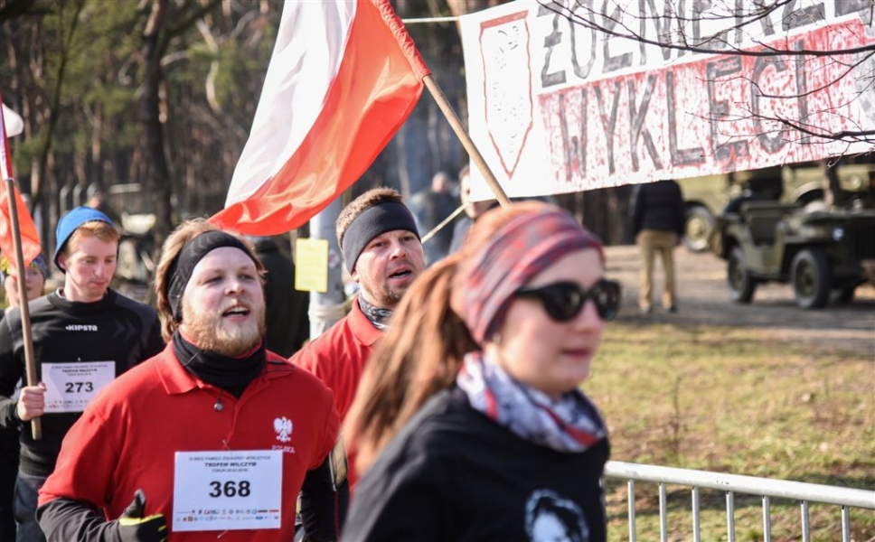Ponad 700 osób stanęło w Toruniu na starcie niedzielnego (28 lutego 2016 r. ) Biegu Tropem Wilczym, rozegranego w lesie przy Arenie Toruń. Wydarzenie jest częścią ogólnopolskich obchodów Dnia Pamięci Żołnierzy Wyklętych, przypadającego 1 marca. Biegowi towarzyszyły: inscenizacja historyczna, okolicznościowa wystawa i występ zespołu "Podgórski walczyk". Fot. Lech Kamiński