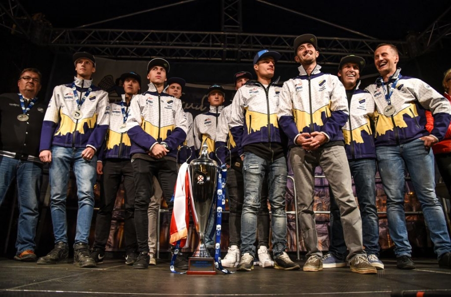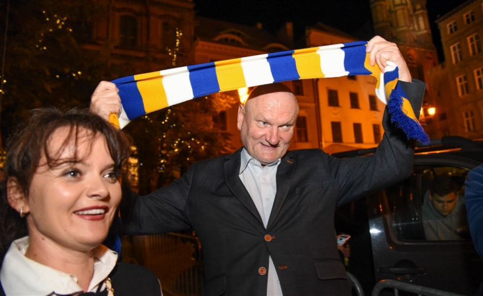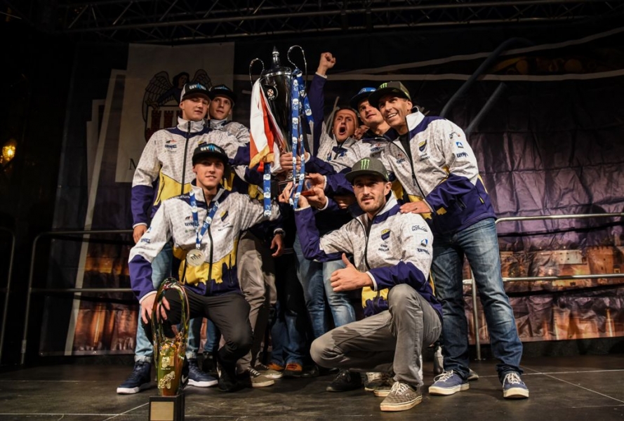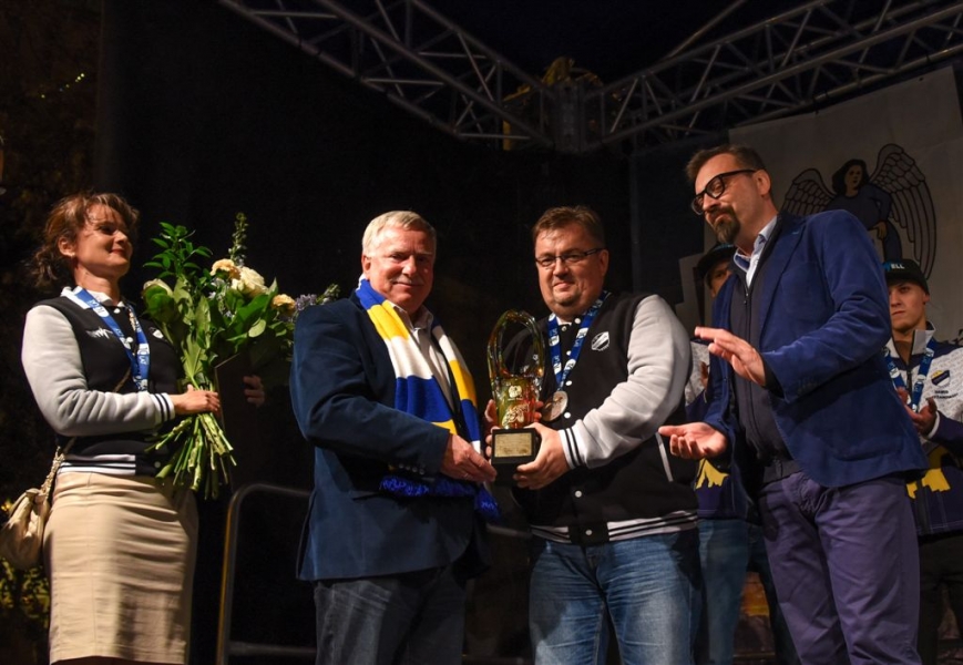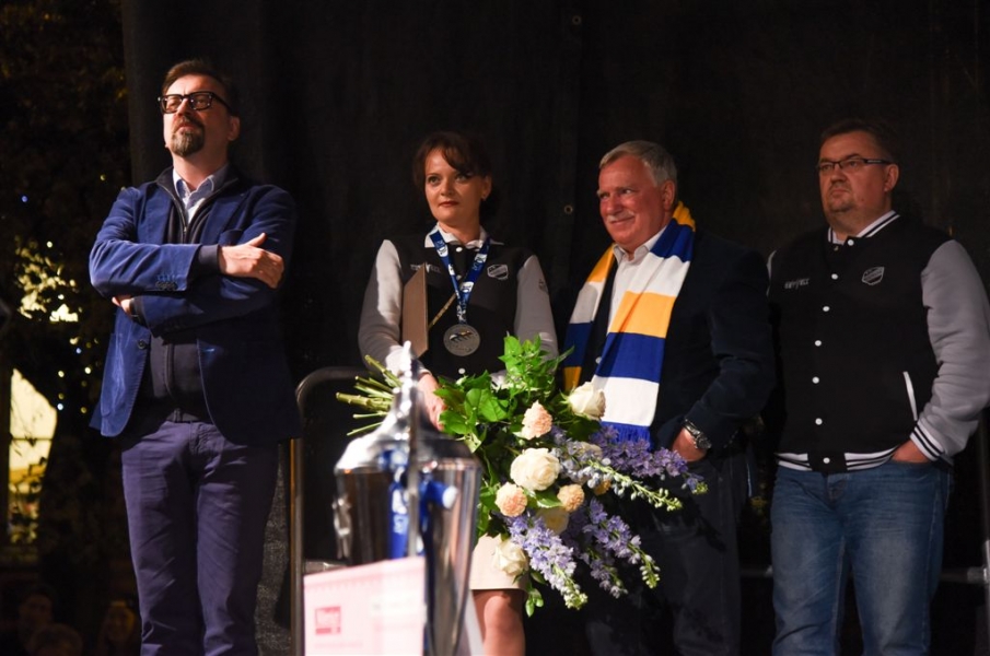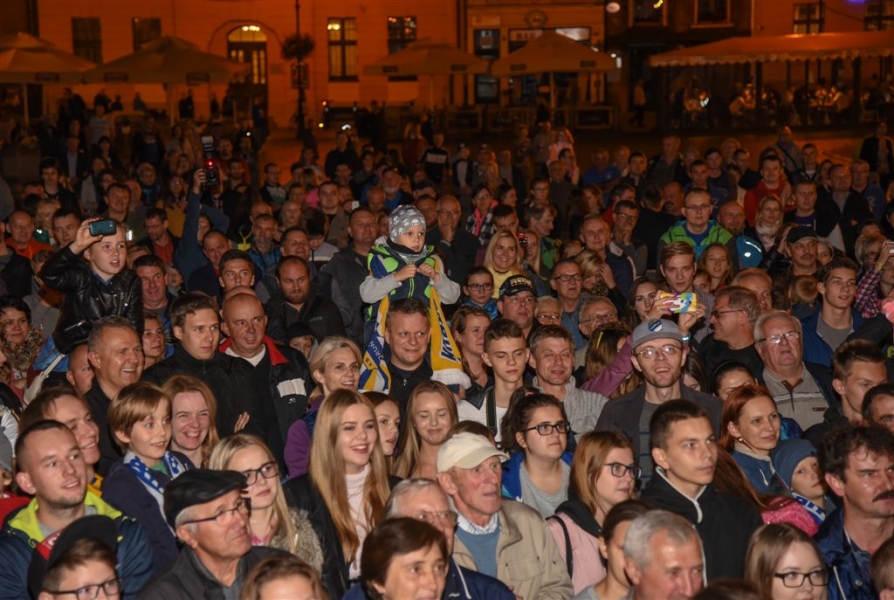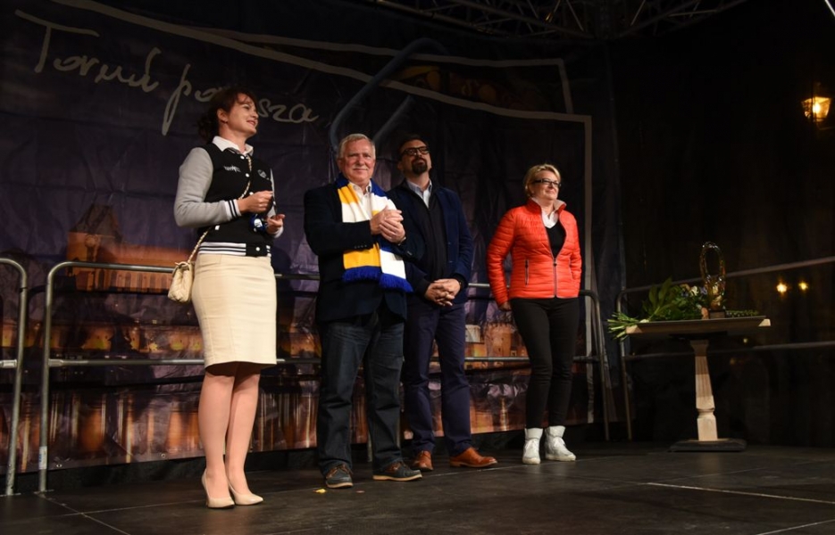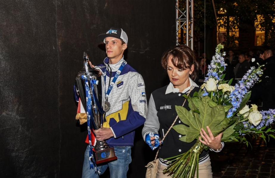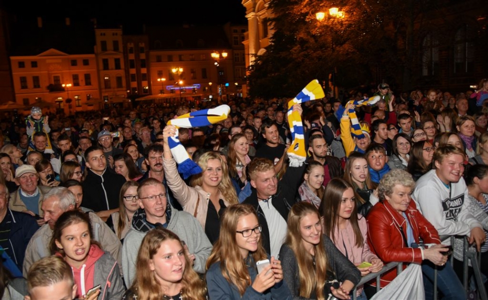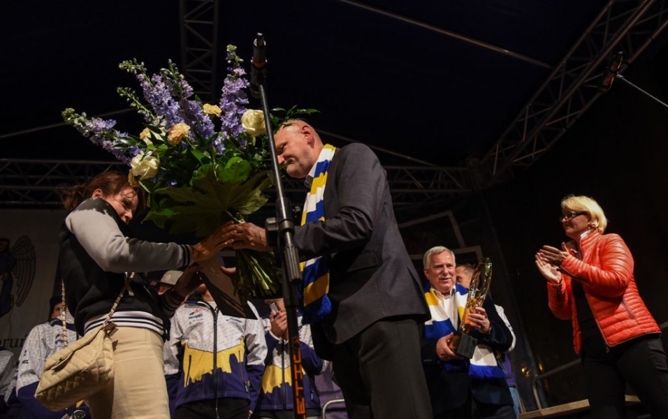 30 września 2016 r. zawodnicy Get Well Toruń spotkali się na toruńskim Rynku Staromiejskim z kibicami. Za zdobycie srebrnego medalu Drużynowych Mistrzostw Polski otrzymali od miasta czek na 150 tys. zł. Wręczył go prezydent Torunia Michał Zaleski. Fot. Lech Kamiński