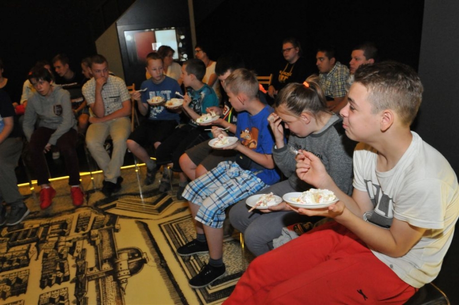 Wycieczka do Domu Eskenów i tort od prezydenta - tak 1 czerwca 2016 r. świętowali Dzień Dziecka uczniowie Zespołu Szkół nr 6 w Toruniu. Spotkanie dla niepełnoprawnych podopiecznych „szóstki” przygotował jak co roku toruński hotel Filmar. Tym razem dzieci odwiedziły Muzeum Historii Torunia w Domu Eskenów. Czekał tam na nie prezent od prezydenta Torunia – ogromny tort z herbem miasta. Fot. Małgorzata Litwin