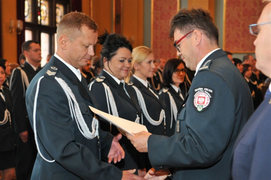 Toruńska Izba Celna obchodziła 30 września 2015 r. Dzień Służby Celnej. W katedrze została odprawiona Msza św. w intencji funkcjonariuszy celnych i pracowników korpusu służby cywilnej, a w Dworze Artusa zasłużeni funkcjonariusze celni odebrali z rąk swoich przełożonych oraz przedstawicieli rządu i samorządu odznaczenia państwowe, akty awansu na wyższe stopnie służbowe oraz nagrody okolicznościowe. Fot. Małgorzata Litwin