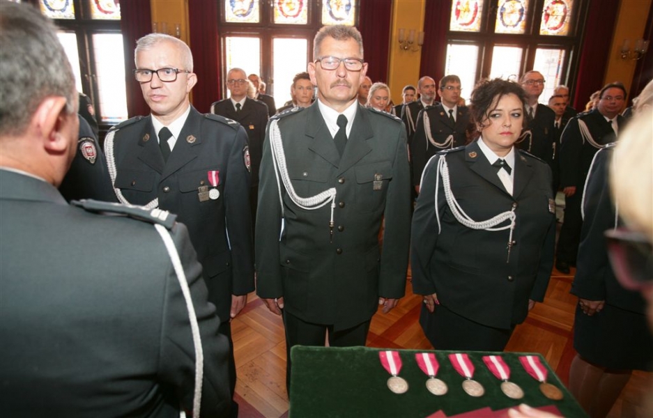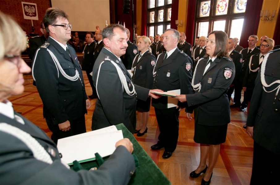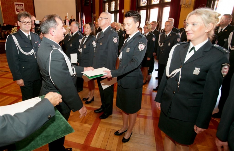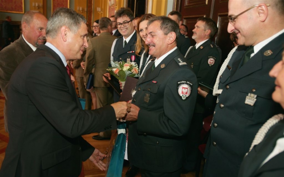 8 września 2016 r. w Toruniu odbyły się uroczystości z okazji Dnia Służby Celnej. Zasłużeni funkcjonariusze celni odebrali z rąk swoich przełożonych odznaczenia państwowe, akty awansu na wyższe stopnie służbowe oraz nagrody okolicznościowe. Gościem toruńskich obchodów był zastępca szefa Służby Celnej, podinspektor Jerzy Chrobak. Fot. Adam Zakrzewski