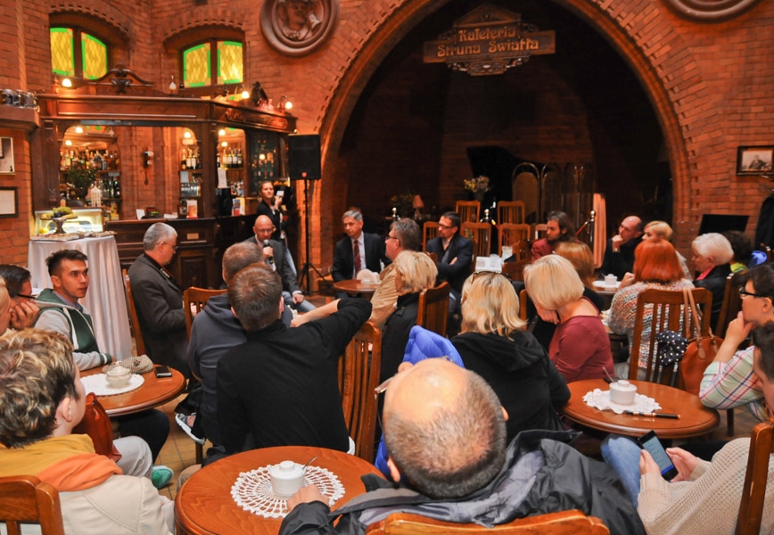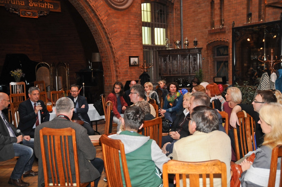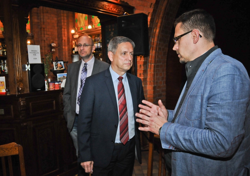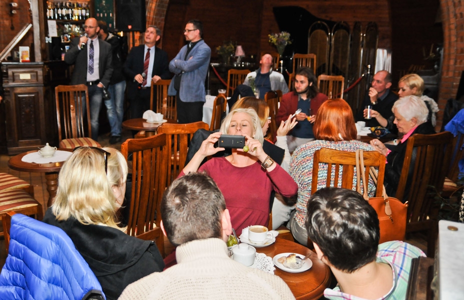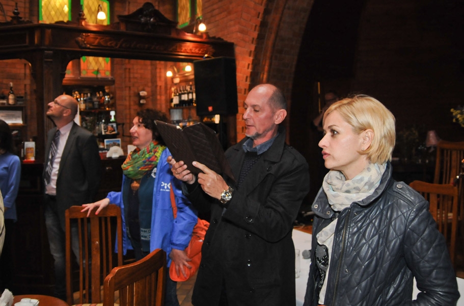 Pięćdziesięcioosobowa grupa dziennikarzy, uczestników Międzynarodowego Konkursu Artystycznych Form Radiowych i Warsztatów Sztuki Radiowej Grand PiK 2015, gościła w Toruniu 8 września 2015 r. fot. Lech Kamiński