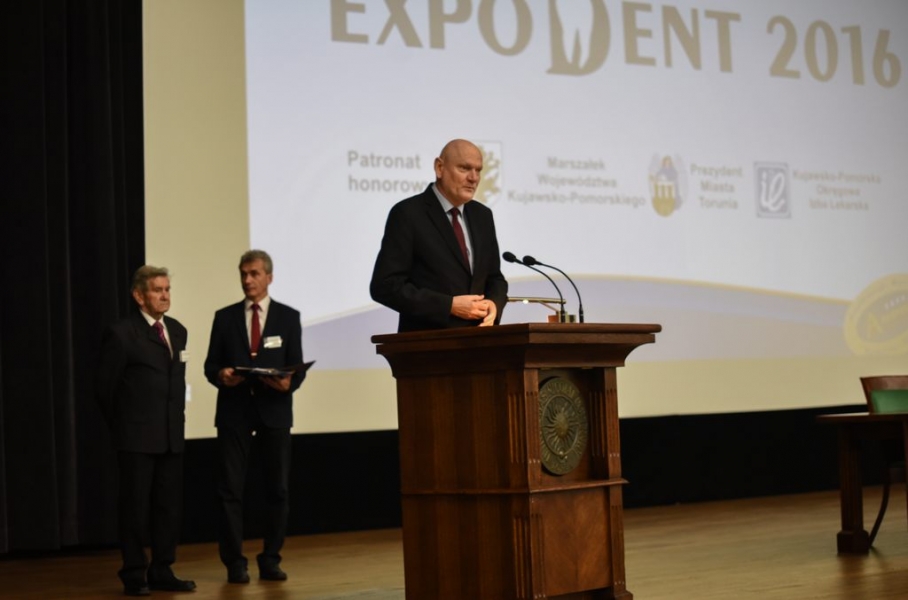 Lekarze stomatolodzy, technicy dentystyczni i pielęgniarki spotkali się w Toruniu 21-22 października 2016 r. na 22. edycji targów i konferencji "Expodent". Gościem inauguracji wydarzenia w auli UMK był prezydent Torunia Michał Zaleski. Fot. Lech Kamiński