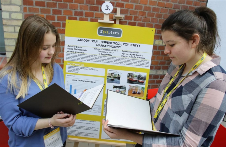 Zachęcanie młodzieży z województwa kujawsko-pomorskiego do realizowania własnych projektów badawczych to cel Festiwalu Naukowego E(x)plory, który 9 maja 2017 r. odbył się w Międzynarodowym Centrum Spotkań Młodzieży w Toruniu. W tym roku można było zobaczyć na nim 20 projektów młodych naukowców, w tym 3 z Bydgoszczy i 2 z Torunia. Organizatorem imprezy jest Fundacja Zaawansowanych Technologii we współpracy z Urzędem Marszałkowskim Województwa Kujawsko-Pomorskiego. Patronat honorowy objął prezydent Torunia Michał Zaleski. Fot. Adam Zakrzewski
