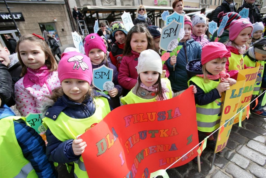"Profesor Filutek z Filusiem do pary odwiedzają ulicę Wielkie Garbary’" - pod tym hasłem obchodziliśmy w piątek, 1 kwietnia 2016 r. święto ulicy Wielkie Garbary oraz imieniny Zbigniewa Lengrena, rysownika, twórcy komiksowej postaci profesora Filutka i psa Filusia. Imprezę zorganizowało Biuro Toruńskiego Centrum Miasta we współpracy ze Szkołą Podstawową nr 1 w Toruniu i aktorami Baja Pomorskiego. Fot. Adam Zakrzewski