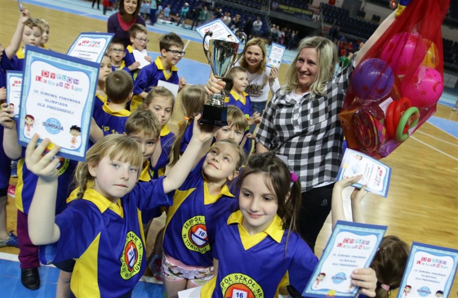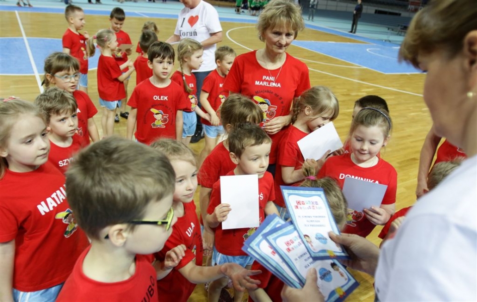 31 zespołów rywalizowało w tegorocznej 10. Zimowej Olimpiadzie Przedszkolaków w Toruniu. W finale, który odbył się 28 marca 2017 r. w Arenie Toruń, udzial wzięło 9 zespołów. I miejsce zajęły dzieci z oddziału przedszkolnego w SP nr 23, przed oddziałem przedszkolnym z SP nr 6 i Przedszkolem Miejskim nr 14. Organizatorem zawodów jest Wydział Sportu i Turystyki UMT we współpracy z Miejskim Klubem Lekkoatletycznym. Fot. Adam Zakrzewski