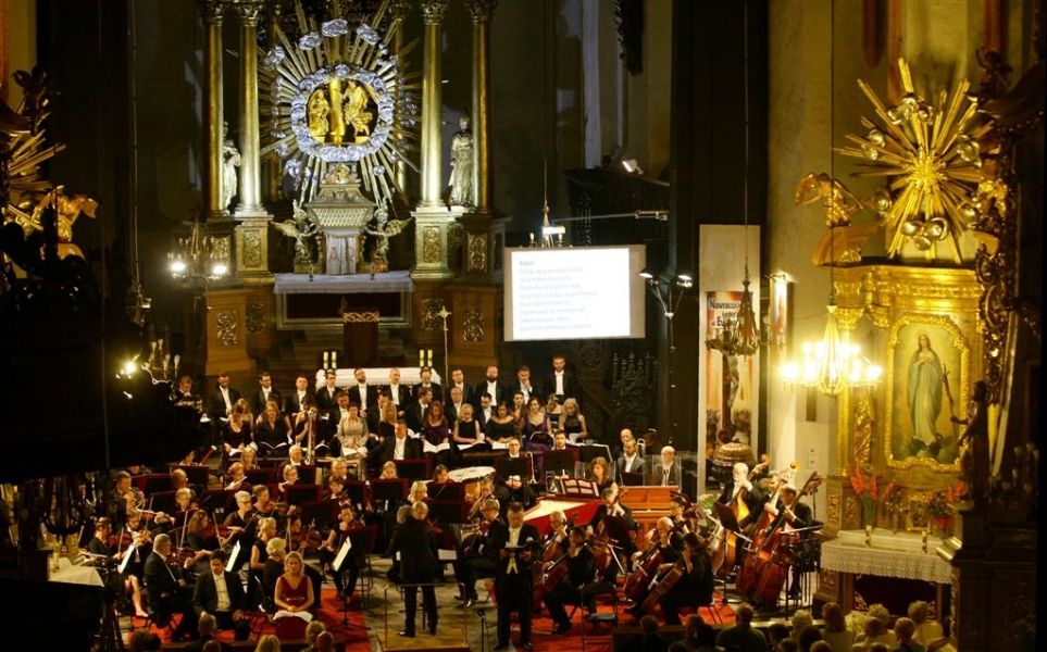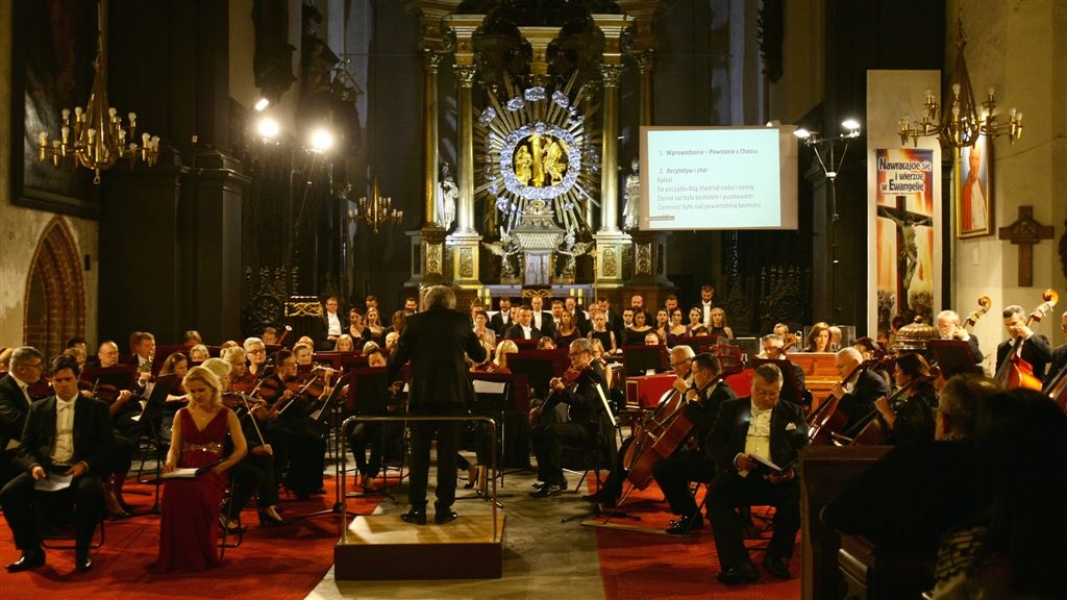 Arcydzieło sztuki oratoryjnej, "Stworzenie świata" Józefa Haydna, zabrzmiało w Toruniu podczas finałowego wieczoru Festiwalu Nova Muzyka i Architektura 2015. Koncert odbył się 29 sierpnia w gotyckim kościele Wniebowzięcia Najświętszej Marii Panny. Wystąpili znakomici soliści: Aleksandra Kubas-Kruk, Nicholas Mulroy, Bogdan Makal i Jerzy Butryn. Towarzyszył im czołowy zespół polskiej sceny muzyki chóralnej - Chór Narodowego Forum Muzyki z Wrocławia pod dyrekcją Andrzeja Kosendiaka, dyrektora Narodowego Forum Muzyki, profesora Akademii Muzycznej w Gdańsku. Koncert poprowadzi ła Magdalena Miśka- Jackowska, dziennikarka RMF Classic. Fot. Adam Zakrzewski