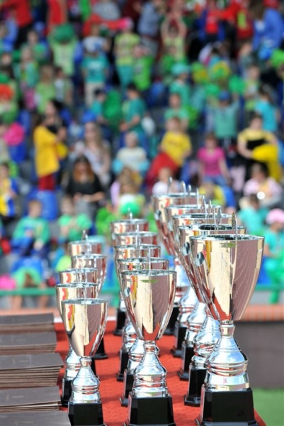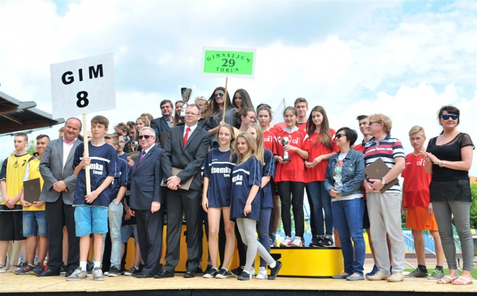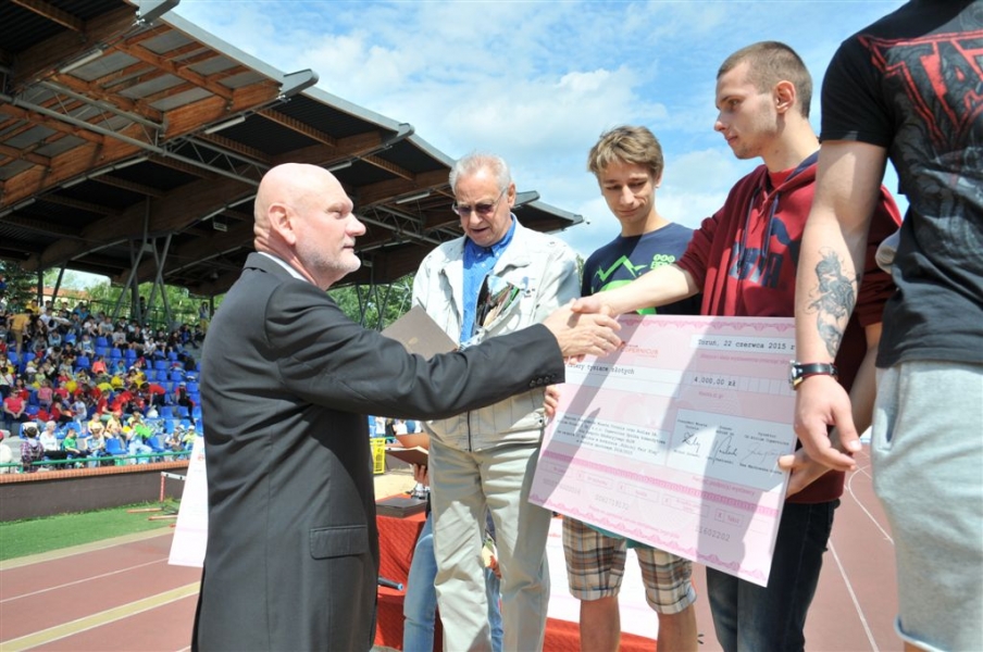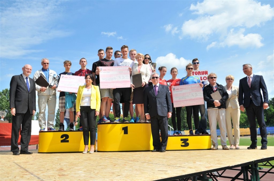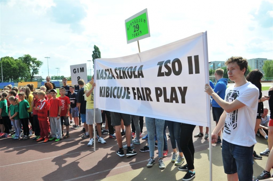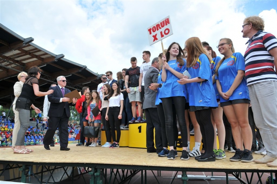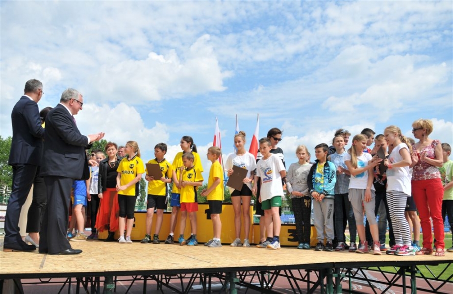 Na Stadionie Miejskim 22 czerwca 2015 r. wręczono nagrody zwycięzcom i uczestnikom Toruńskiej Olimpiady Przedszkoli i Szkół 2014/2015 oraz konkursu „KIBICUJ FAIR PLAY”. Fot. Małgorzata Litwin