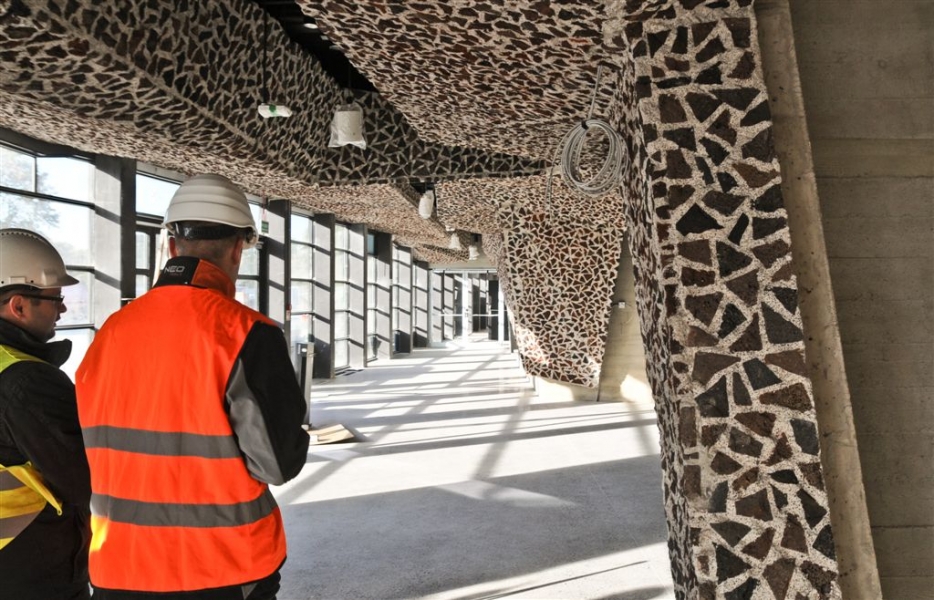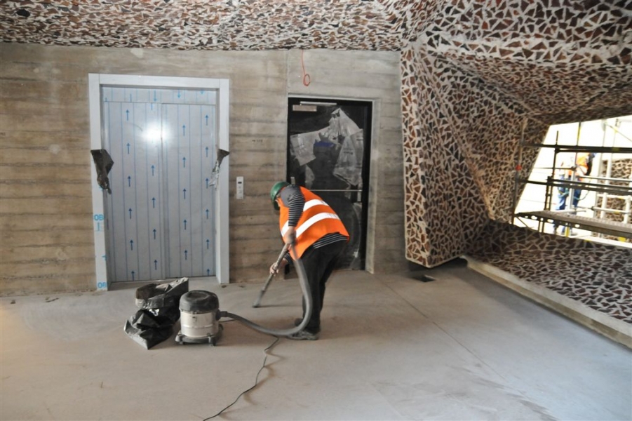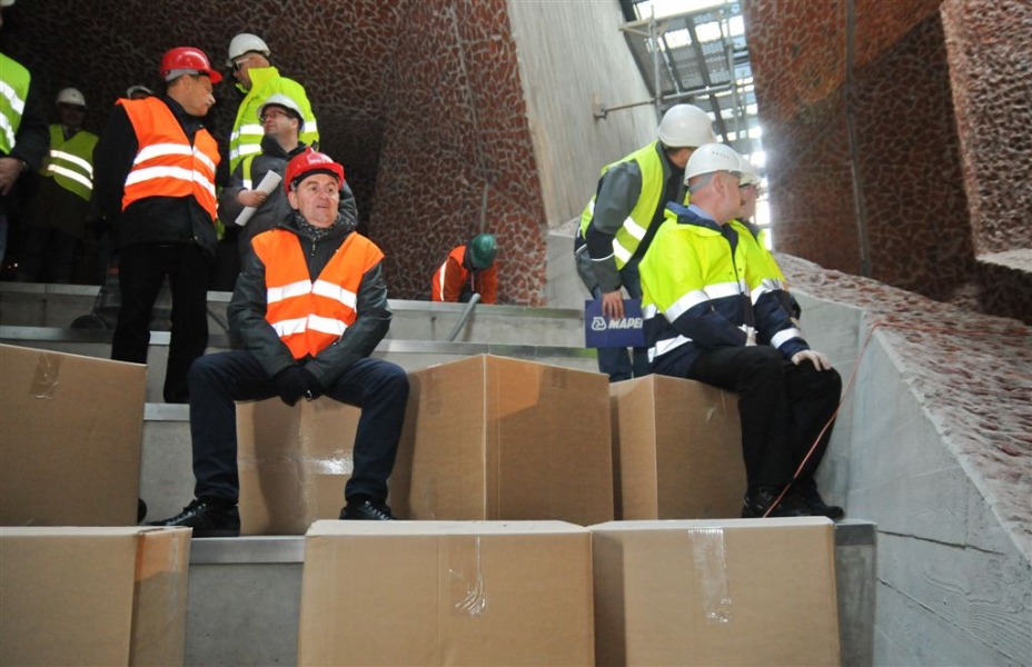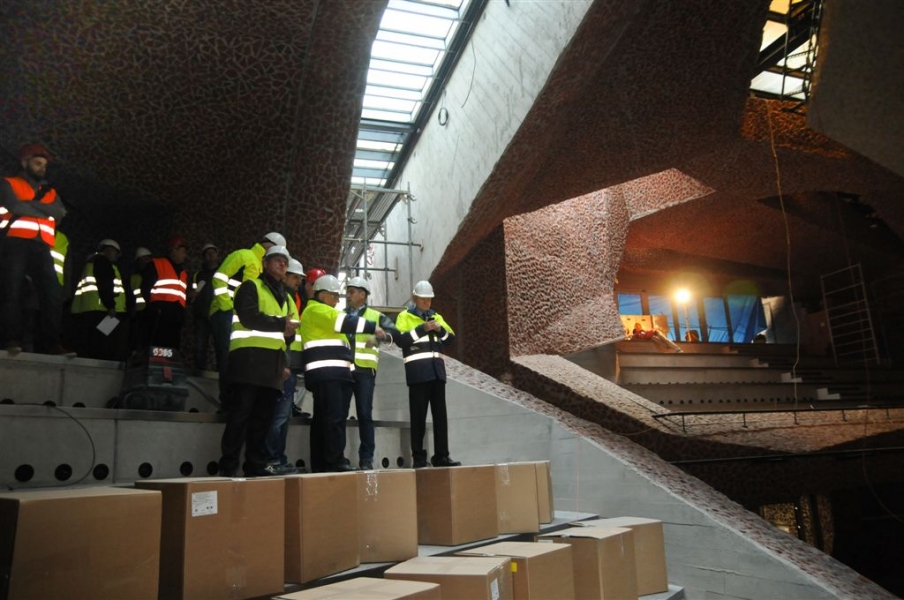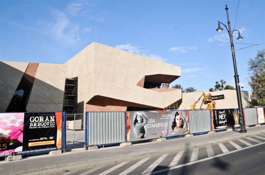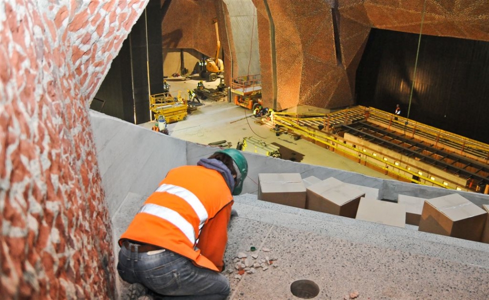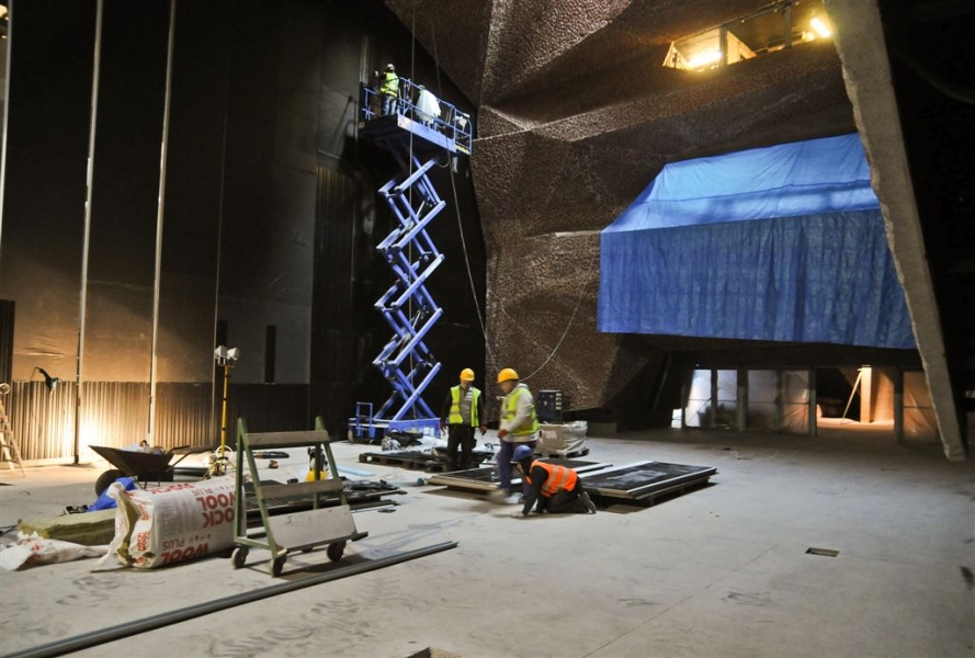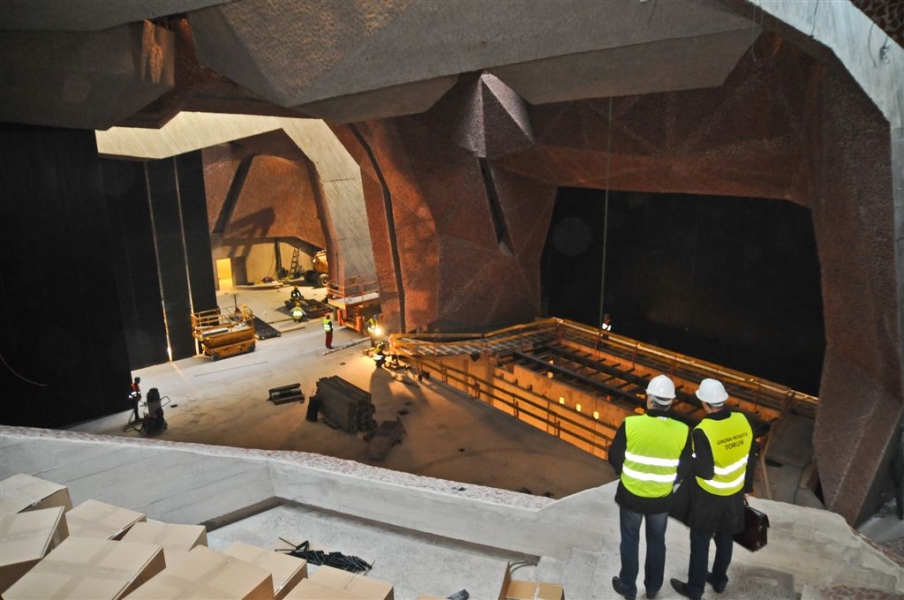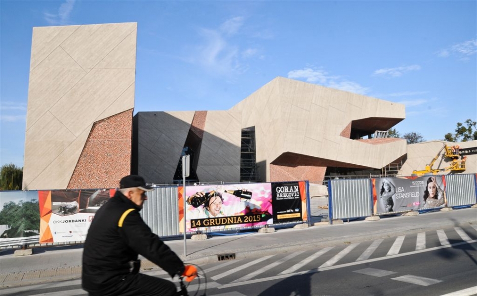 W sali koncertowej na Jordankach trwają prace wykończeniowe we wnętrzach i montaż wyposażenia obiektu, zaprojektowanego przez hiszpańską pracownię Menis Arquitectos, a wybudowanego przez Mostostal Warszawa SA. Zasiedlane są pierwsze biura. Już w grudniu 2015 r. w sali odbędą się pierwsze koncerty. Zdjęcia z 8 października 2015 r. Fot. Lech Kamiński