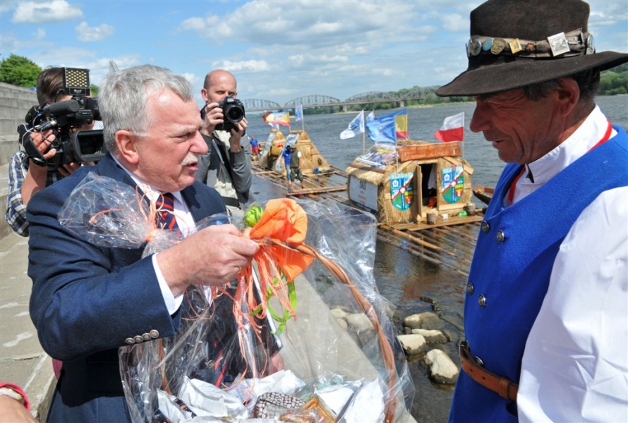 10 czerwca 2016 r. do Torunia przypłynęli flisacy z Ulanowa nad Sanem. Rozpoczęli swój flis 22 maja w Ulanowie, by uczcić 400-lecie tego podkarpackiego miasta i nawiązać do jego bogatych flisackich tradycji. 18 czerwca chcą dopłynąć Wisłą do Gdańska. Na trasie spływu nie mogło oczywiście zabraknąć Torunia, gdzie na nabrzeżu powitała ich piernikami delegacja na czele z zastępcą prezydenta Torunia Zbigniewem Fiderewiczem. Fot. Małgorzata Litwin