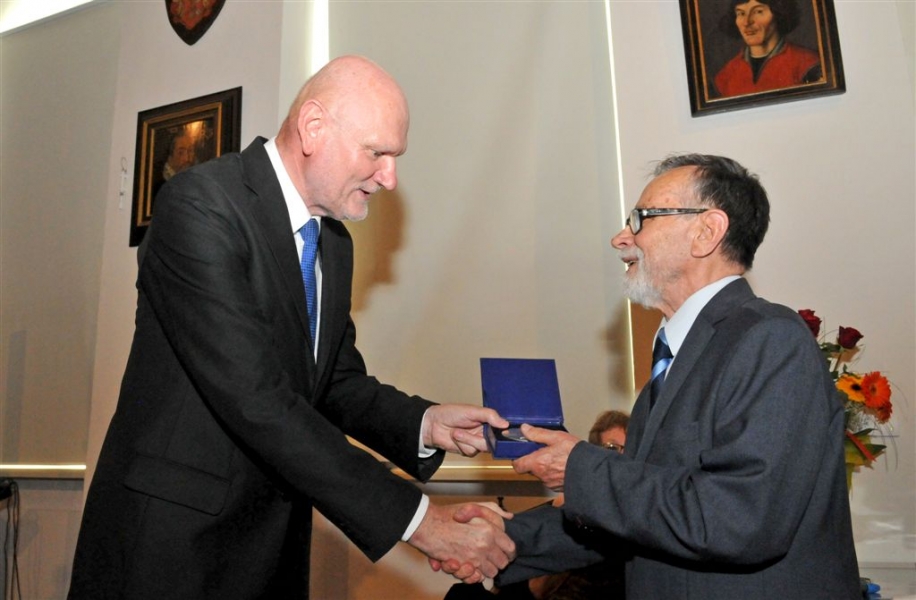 Jubileusz 90. urodzin świętował 3 czerwca 2016 r. wybitny toruński naukowiec i konserwator zabytków prof. Wiesław Domasłowski. Podczas uroczystości w Ratuszu Staromiejskim prezydent Torunia Michał Zaleski odznaczył go medalem Thorunium - najwyższym wyróżnieniem Prezydenta Miasta Torunia. Fot. Małgorzata Litwin