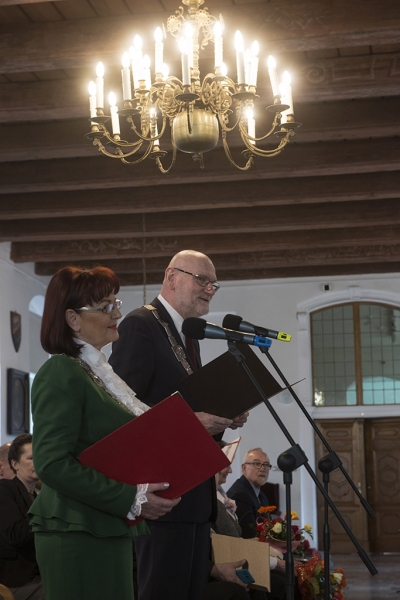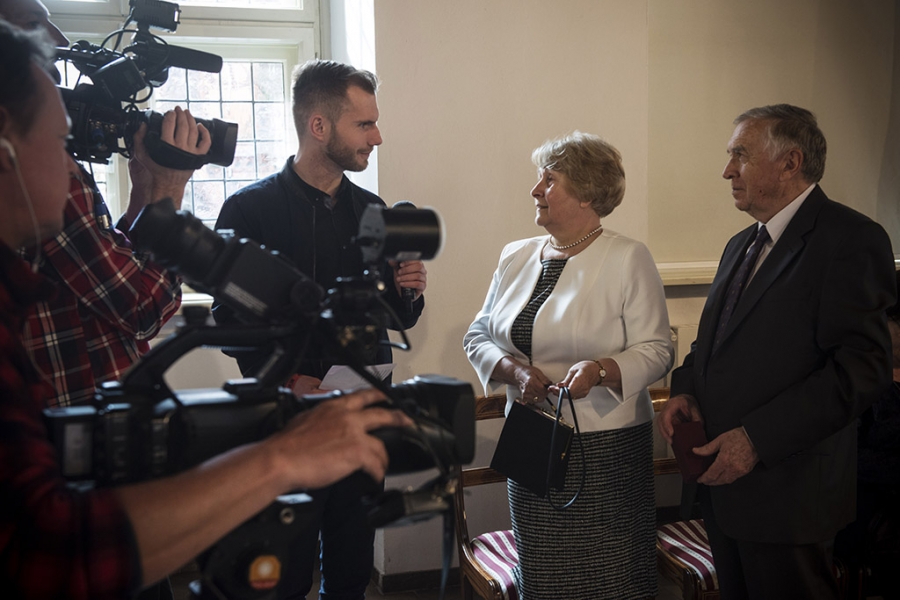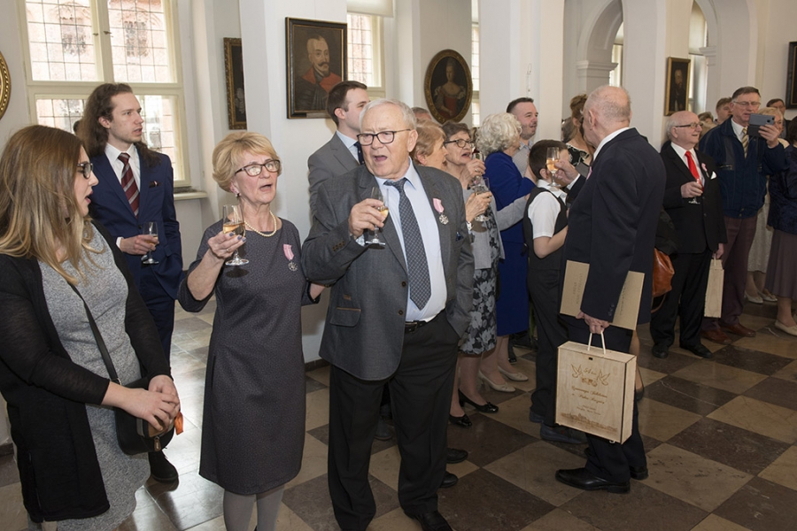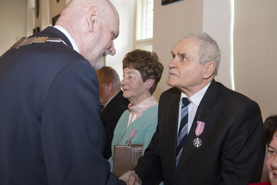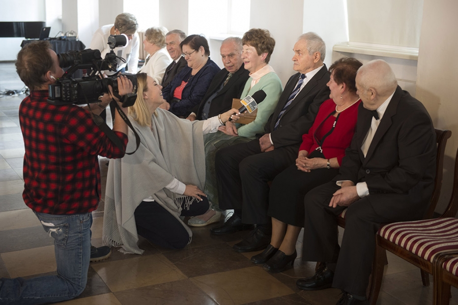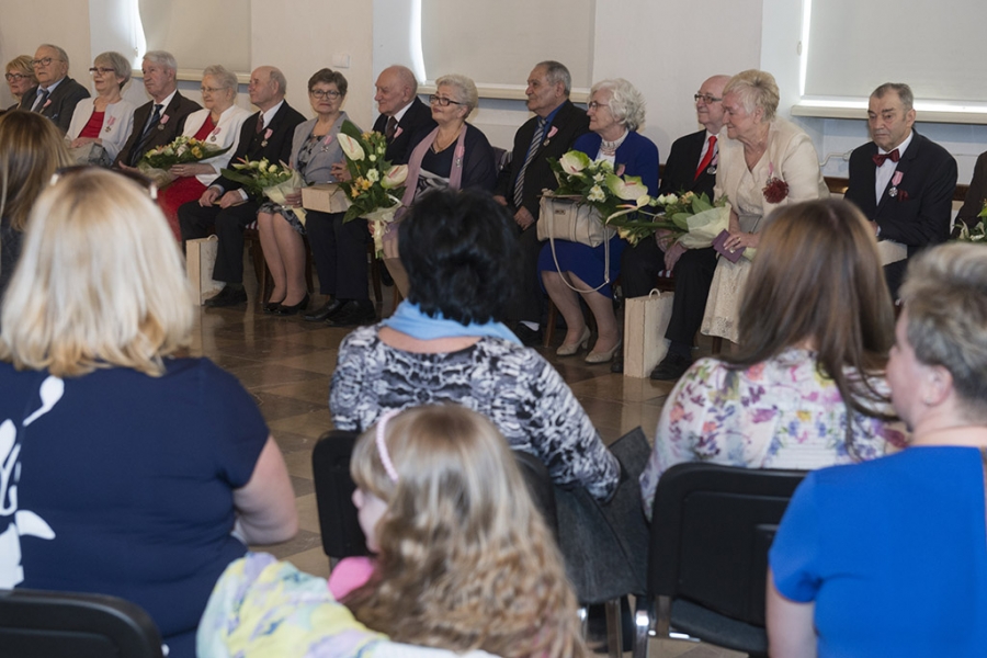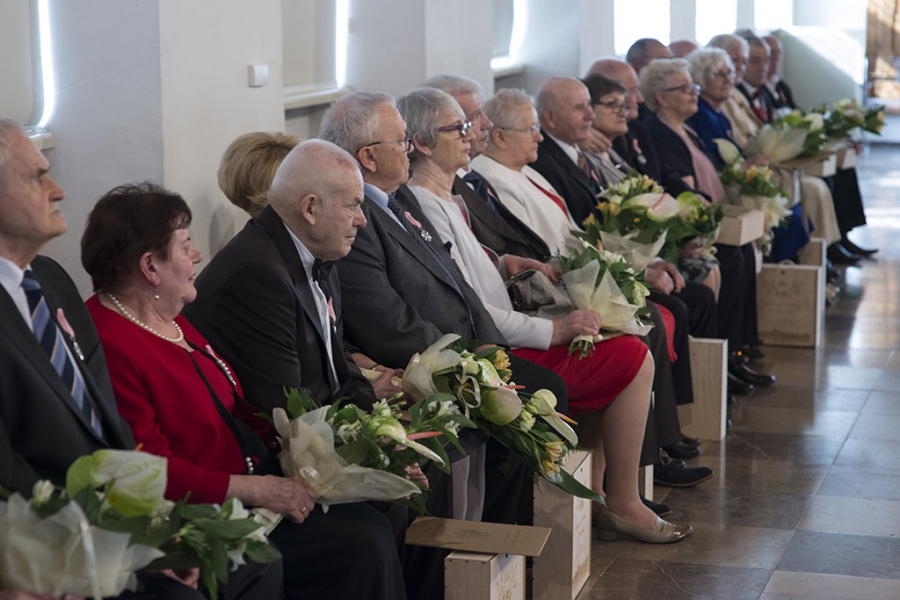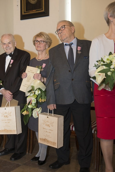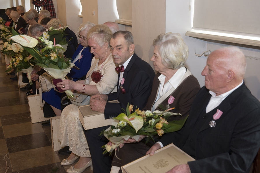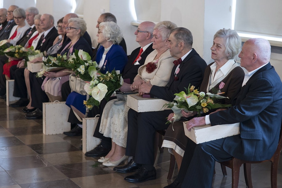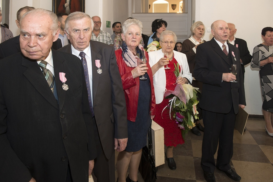 W Ratuszu Staromiejskim w Toruniu dwanaście par małżeńskich świętowało 31 marca 2017 r. jubileusz co najmniej 50 lat wspólnego życia. Z tej okazji prezydent Torunia Michał Zaleski wręczył im Medale za Długoletnie Pożycie Małżeńskie. Fot. Wojtek Szabelski