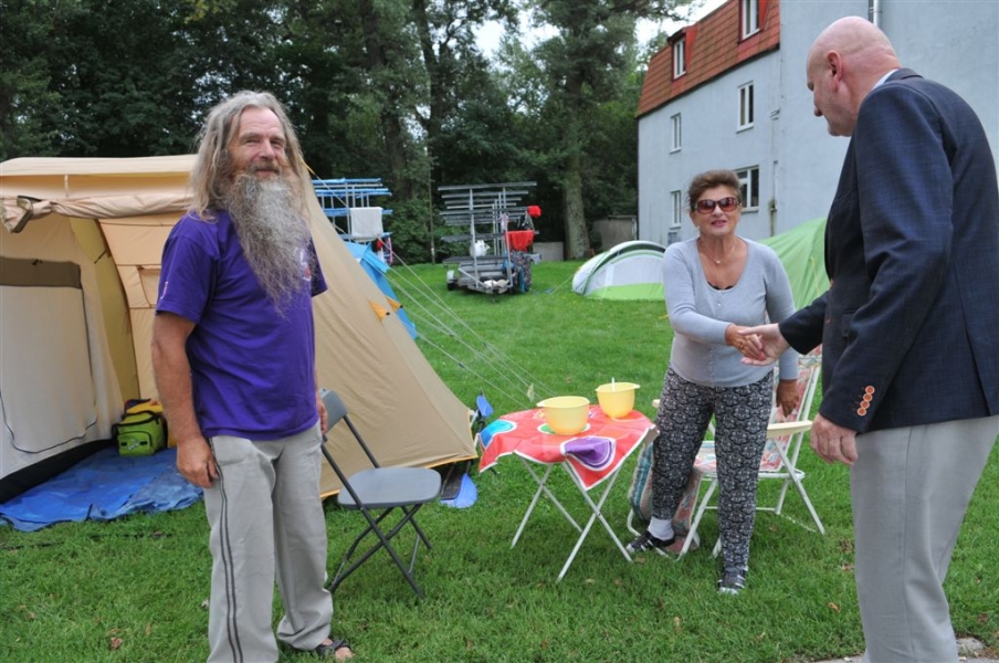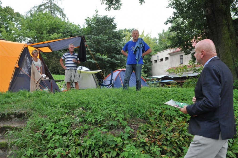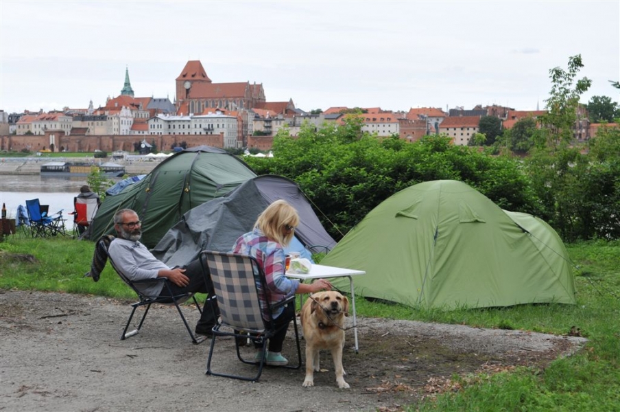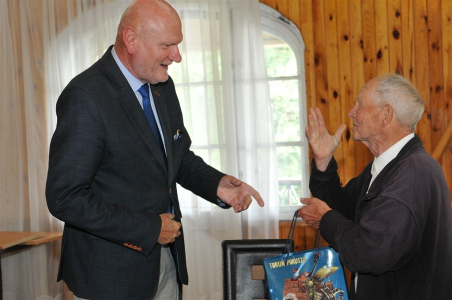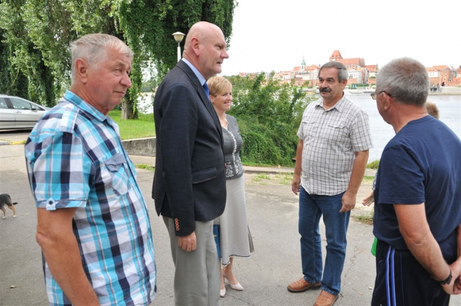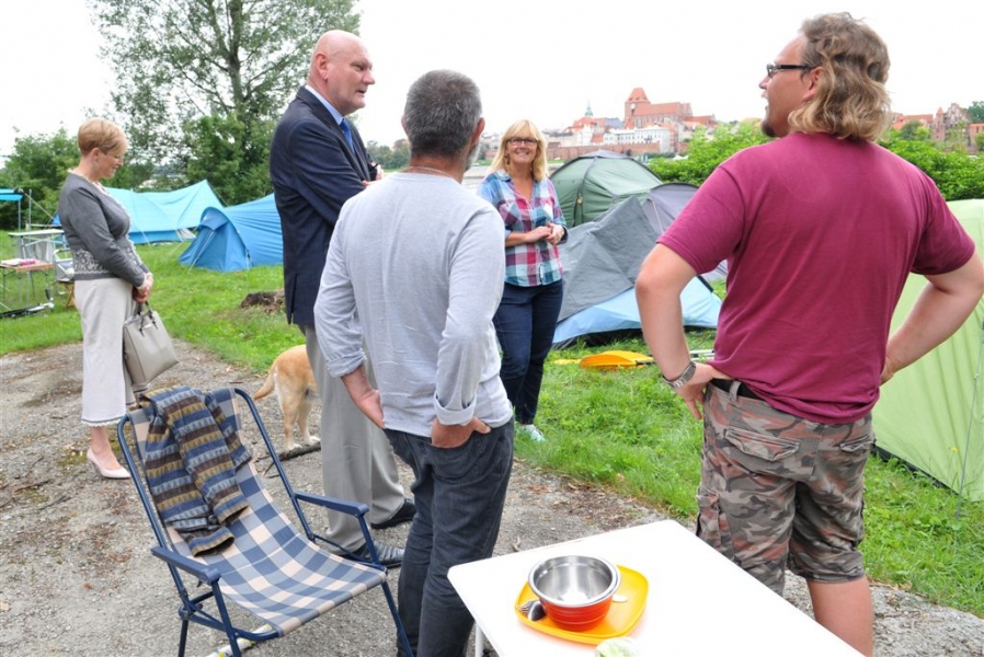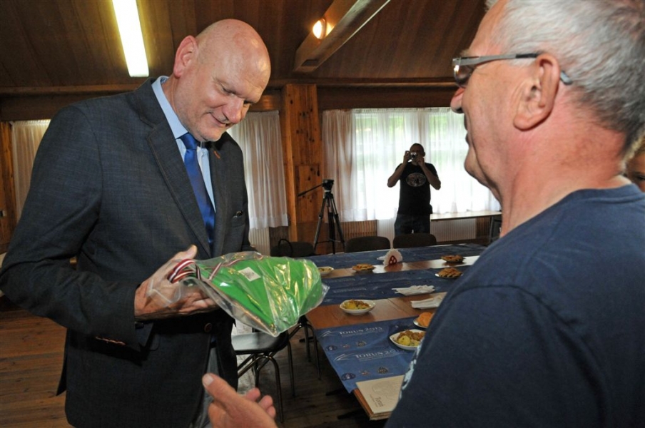 9 sierpnia 2016 r. do Torunia dopłynęli uczestnicy 56. Międzynarodowego Spływu Kajakowego "Pojezierzem Brodnickim – Drwęcą i Wisłą". Zatrzymali się przy przystani TKTS „Budowlani" przy ul. Majdany. 10 sierpnia tradycyjnie odwiedził ich prezydent Torunia Michał Zaleski. Przekazał pamiątkowe upominki z Torunia kierownictwu spływu oraz najstarszemu i najmłodszemu uczestnikowi. Tym pierwszym jest od lat wielki miłośnik spływu, pochodzący z Niemiec Klaus Heine, rocznik 1929, a najmłodszym - 10-letni Dawid Banasik. Fot. Małgorzata Litwin