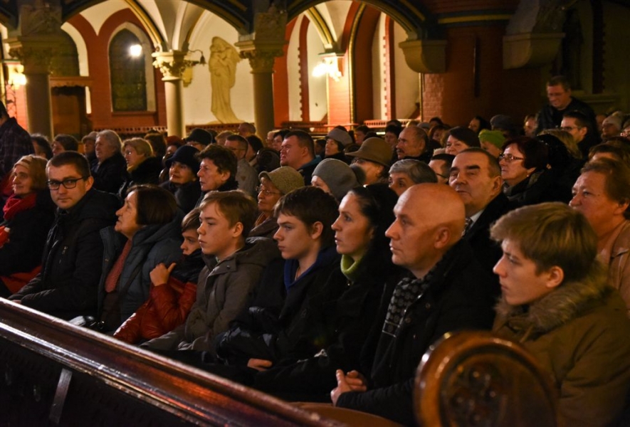 W toruńskim kościele garnizonowym 18 grudnia 2015 r. odbył się kolejny z cyklu koncert "Kolędy dla Ducha", dedykowany pamięci Stanisława Duszyńskiego, założyciela i prezesa Fundacji Ducha Na Rzecz Rehabilitacji Naturalnej Ludzi Niepełnosprawnych, który zmarł w nocy z 18 na 19 grudnia 2005 r. Wystąpili: toruński animator kultury i kompozytor Jacek Beszczyński, Katarzyna Gocajtis, Krzysztof Kwiatkowski, Andrzej Raniszewski i Krzysztof Zaremba. Fot. Lech Kamiński