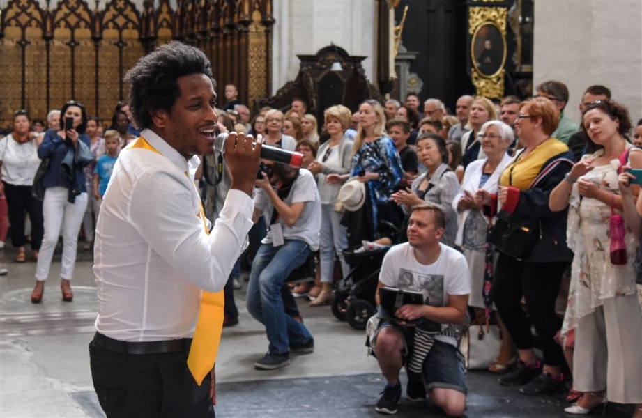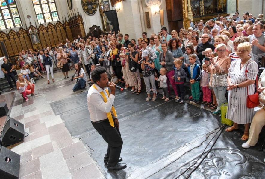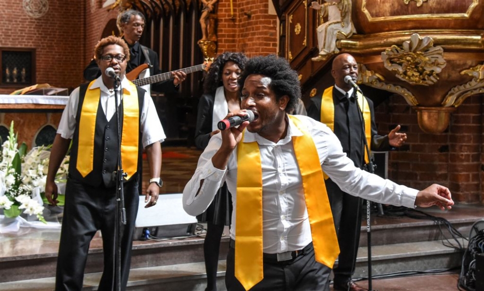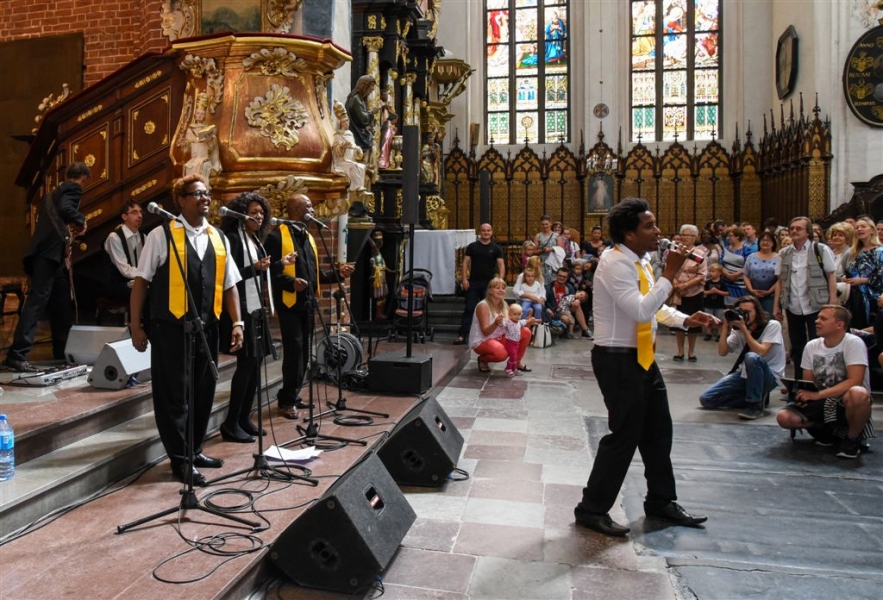 Grupa Black International Gospel Singers wystąpiła w niedzielę, 14 sierpnia w katedrze św. Janów w Toruniu. To międzynarodowy zespół artystów wykonujących muzykę gospel, założony w 2006 roku w Berlinie przez Terry’ego Lovique. Grupa znana jest publiczności w całej Europie. Inspiracje czerpie z różnych stylów muzyki gospel – od tradycyjnych utworów do dzieł współczesnych. Fot. Lech Kamiński