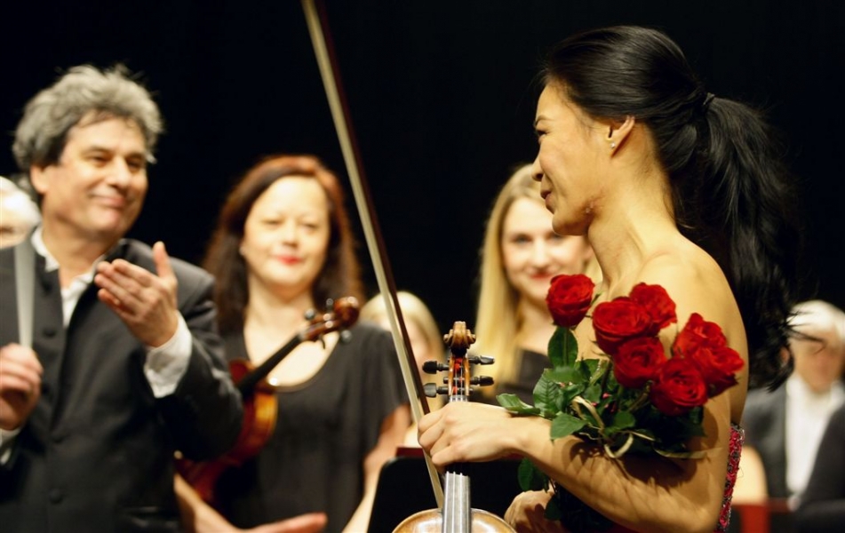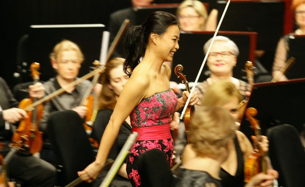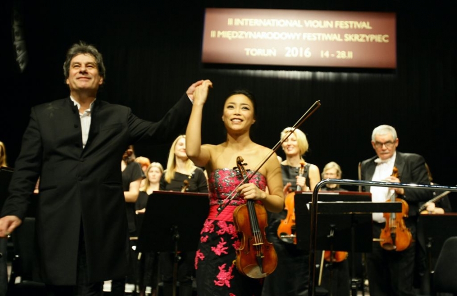 Wybitna koreańska skrzypaczka Soyoung Yoon zagrała w Toruniu 14 lutego koncert skrzypcowy J. Sibeliusa. Wydarzenie zainaugurowało II Międzynarodowy Festiwal Skrzypiec -Toruń 2016, który potrwa do 28 lutego. Organizatorem festiwalu jest Toruńska Orkiestra Symfoniczna. Fot. Adam Zakrzewski