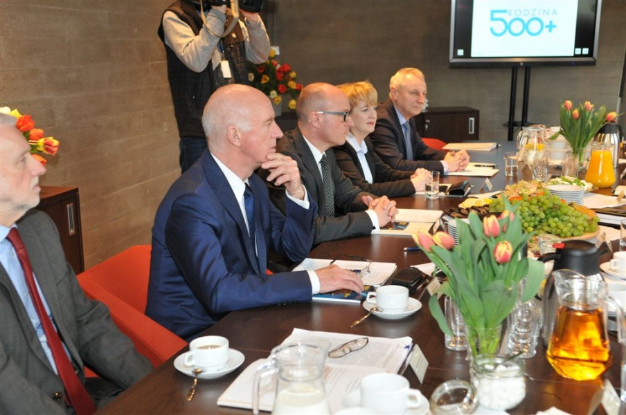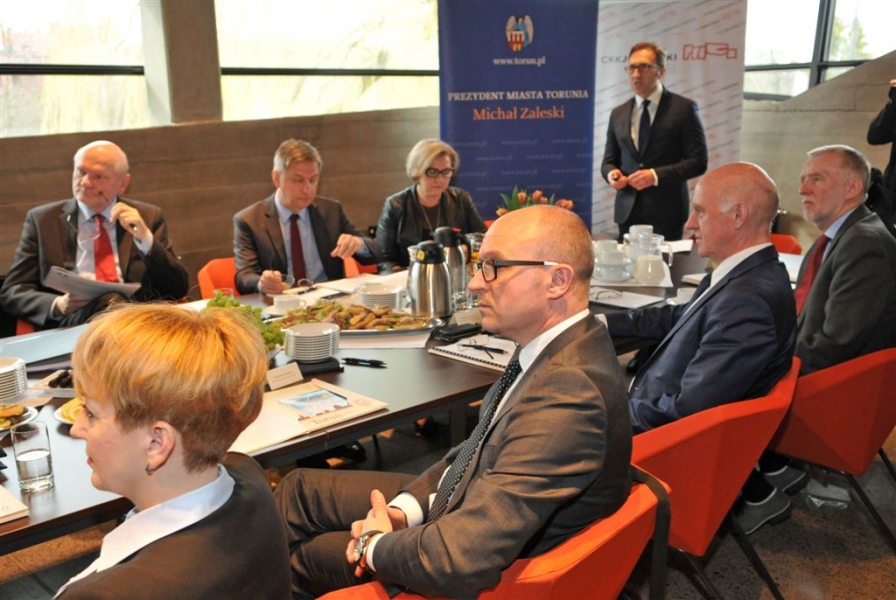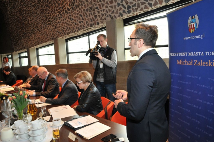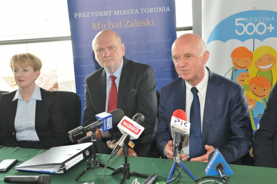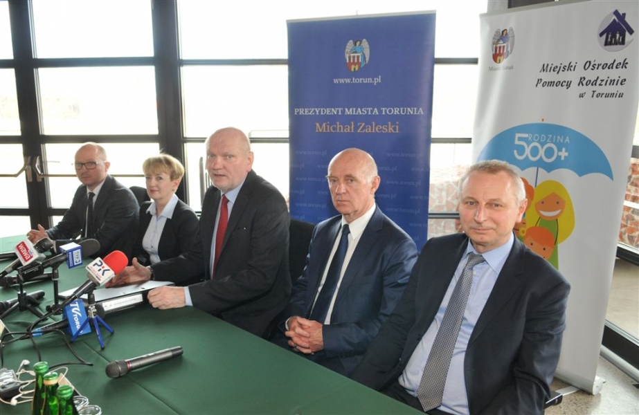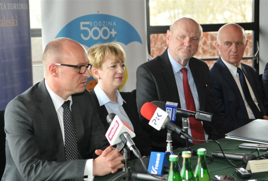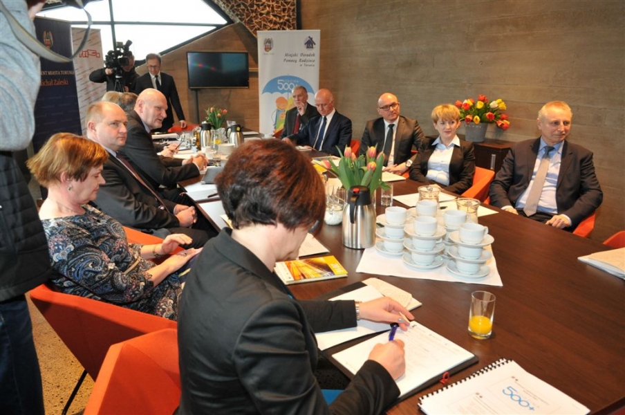 Program Rodzina 500+ była tematem Konwentu Prezydentów Miast Województwa Kujawsko-Pomorskiego, który odbył się 1 kwietnia 2016 r. w Toruniu. Włodarze miast spotkali się w Centrum Kulturalno-Kongresowym Jordanki, by wymienić się doświadczeniami Bydgoszczy, Grudziądza, Inowrocławia, Włocławka i Torunia z przygotowań do realizacji programu. Fot. Małgorzata Litwin