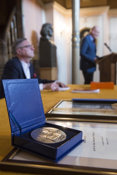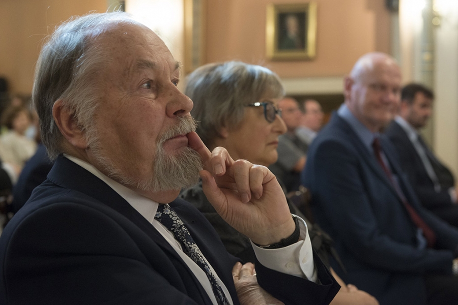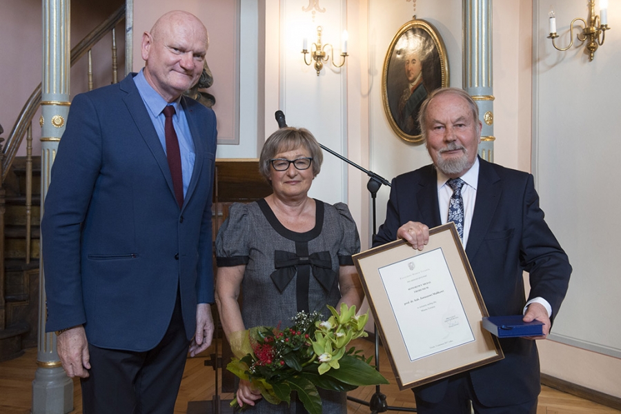 Prof. Janusz Małłek, wybitny historyk związany z UMK, został odznaczony Thorunium - Medalem Honorowym Prezydenta Miasta Torunia. Michał Zaleski wręczył to szczególne wyróżnienie 5 czerwca 2017 r. w siedzibie Towarzystwa Naukowego w Toruniu. Okazją do uhonorowania były osiemdziesiąte urodziny profesora. Fot. Wojtek Szabelski