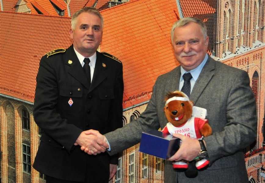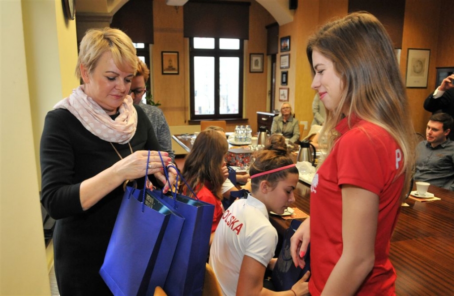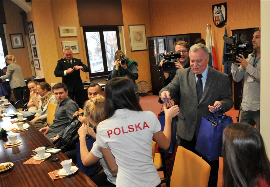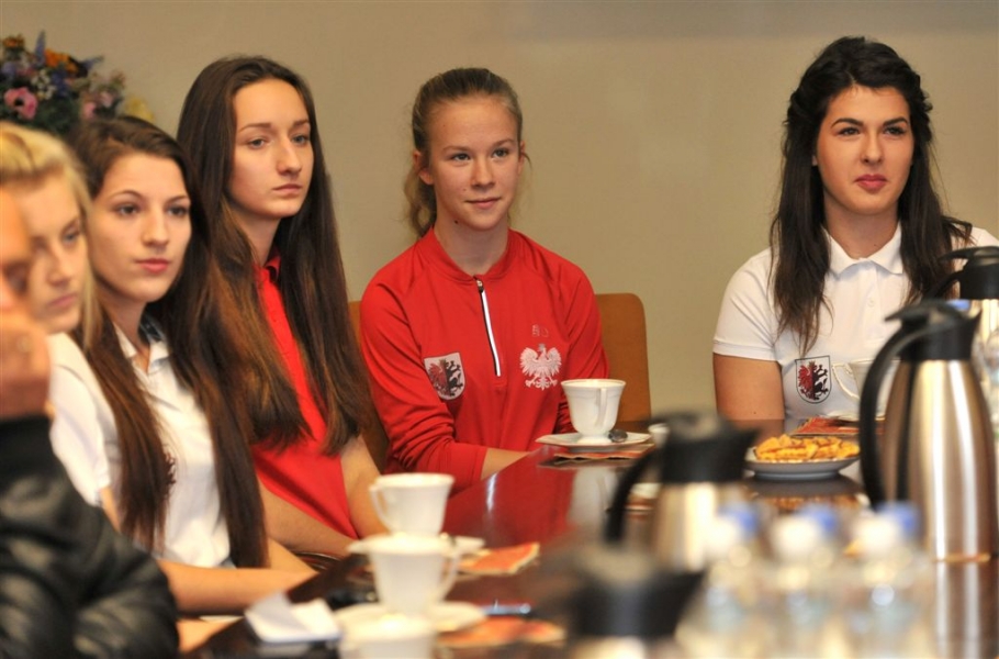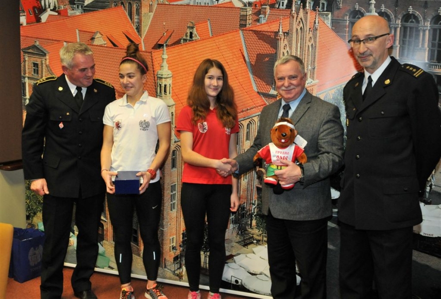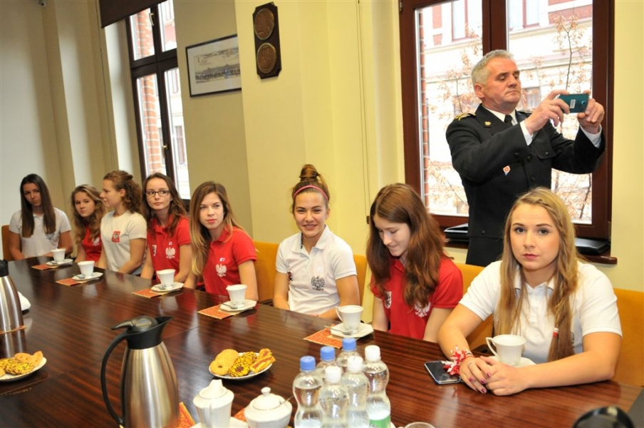 3 listopada 2015 r. w Urzędzie Miasta Torunia gościły uczennice toruńskich szkół odnoszące sukcesy w reprezentacji Polski na Mistrzostwach Świata w Sporcie Pożarniczym. Z zawodniczkami spotkał się zastępca prezydenta Torunia Zbigniew Fiderewicz. Za zdobyte medale miasto ufundowało młodym sportsmenkom nagrody: koszulki sportowe, plecaki, pendrive’y i gadżety promocyjne. Trenerzy otrzymali listy gratulacyjne i torby sportowe. Fot. Małgorzata Litwin