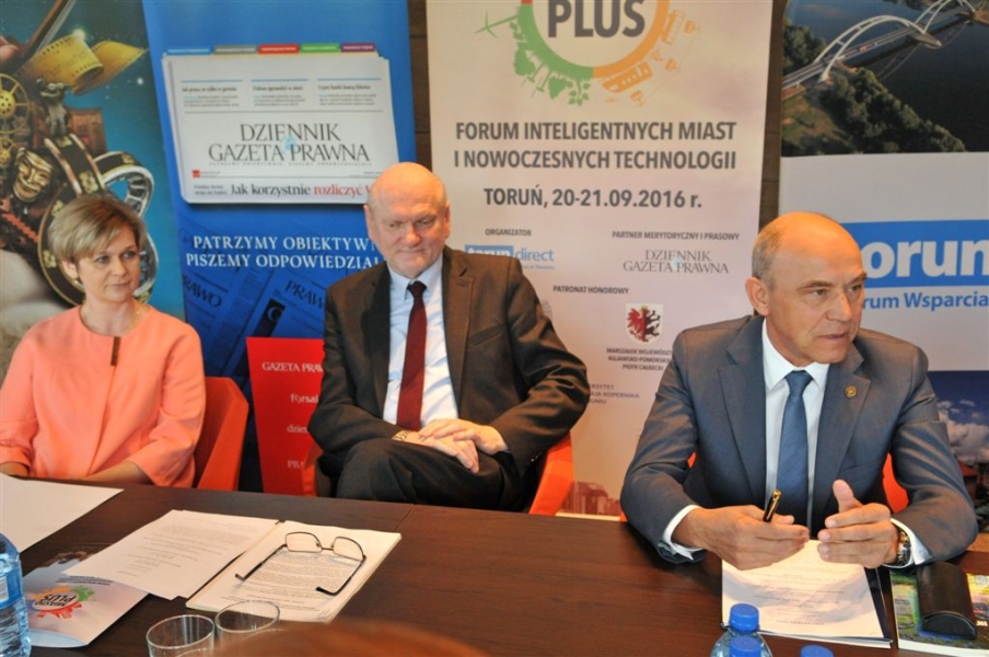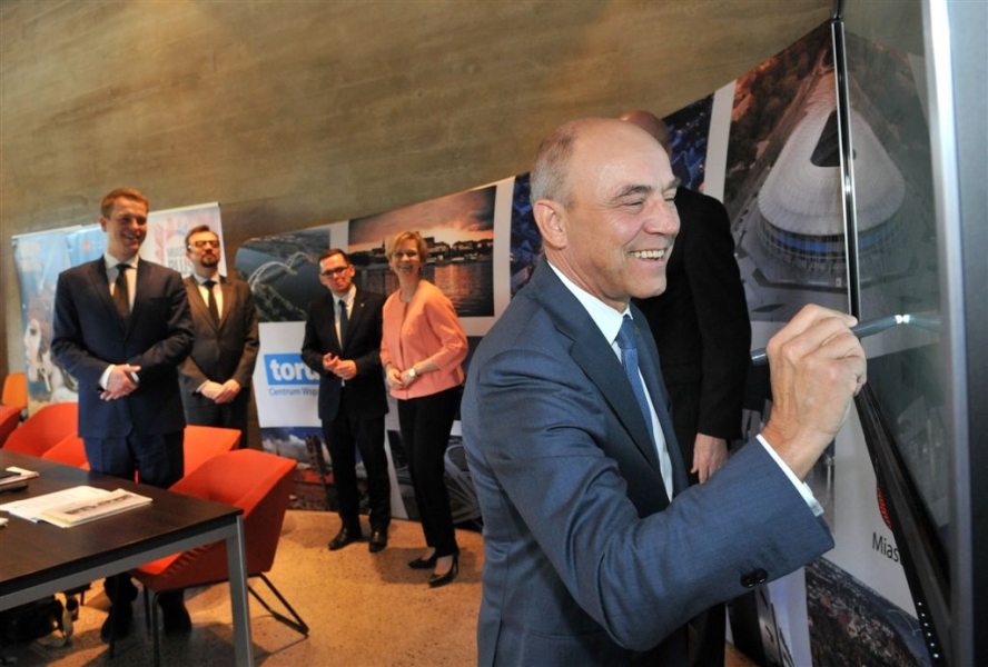 Toruń będzie gospodarzem Forum Inteligentnych Miast i Nowoczesnych Technologii Miasto Plus w dniach 20-21 września 2016 r. Prezydent Torunia podpisał 21 kwietnia list intencyjny dotyczący organizacji tego wydarzenia z przedstawicielami Dziennika Gazety Prawnej i Uniwersytetu Mikołaja Kopernika. Fot. Małgorzata Litwin