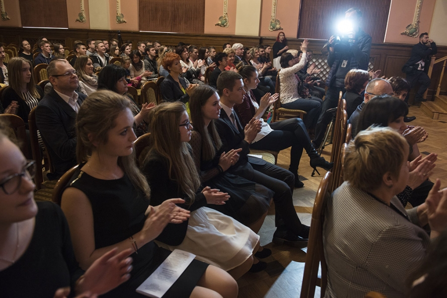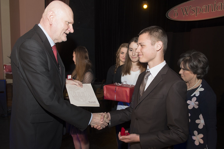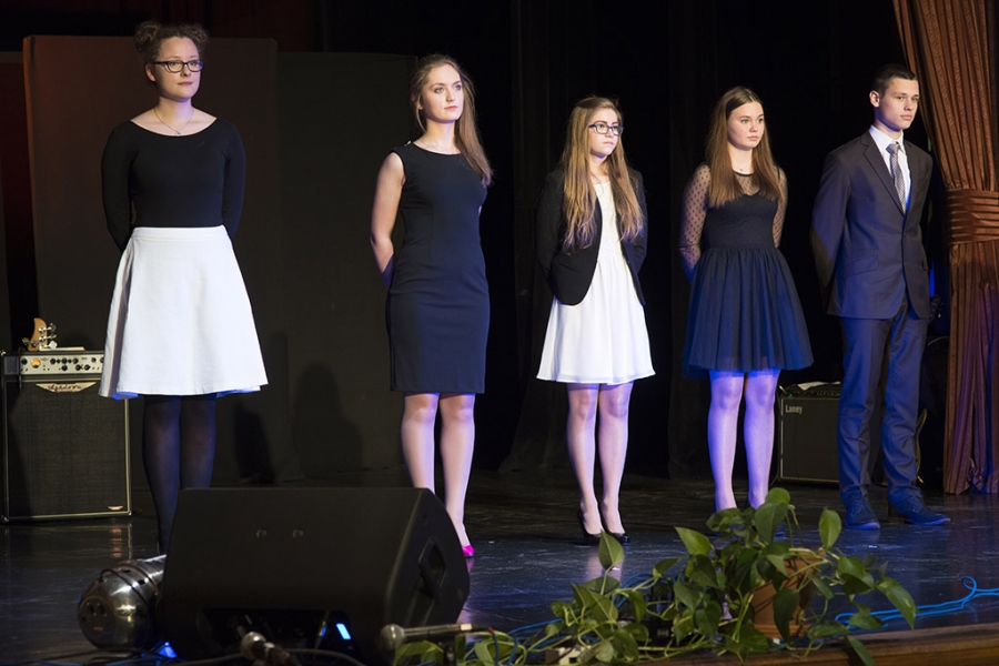 W MDK odbył się 25 kwietnia 2017 r. miejski finał XXII Samorządowego Konkursu Nastolatków "8 Wspaniałych", promującego wśród młodzieży ideę wolontariatu i zaangażowania społecznego. Toruńscy laureaci to Sara Maja Buczyńska, Marta Kozakiewicz, Mateusz Dariusz Pająk, Michalina Julia Schulz i Martyna Żuczek. Podczas uroczystej gali w MDK prezydent Torunia Michał Zaleski wręczył finalistom odznaki, dyplomy i nagrody rzeczowe. Fot. Wojtek Szabelski