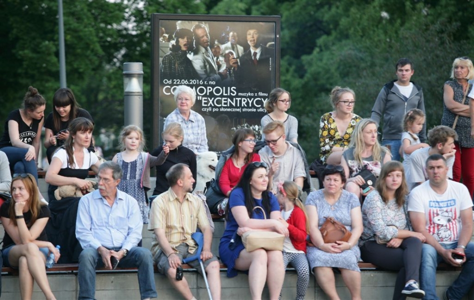 22 czerwca 2016 r. w program,ie pokazów fontanny Cosmopolis po raz pierwszy zabrzmiała muzyka z filmu „Excentrycy, czyli po słonecznej stronie ulicy”. Pokaz uświetnili obecnością twórcy filmu: reżyser Janusz Majewski, Wiesław Pieregorólka - kompozytor i aranżer muzyki, producent Włodzimierz Niderhaus oraz Włodzimierz Kowalewski - pisarz, na motywach powieści którego pwostał film. Imprezę poprowadziła dziennikarka muzyczna Magdalena Miśka - Jackowska, a w oprawie zaśpiewała Jonanna Czajkowska - Zoń. Fot. Adam Zakrzewski