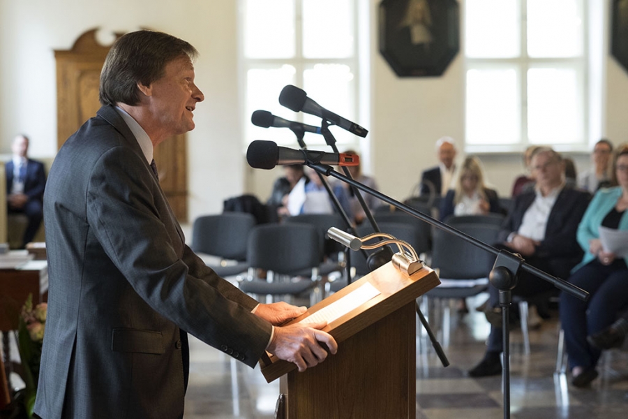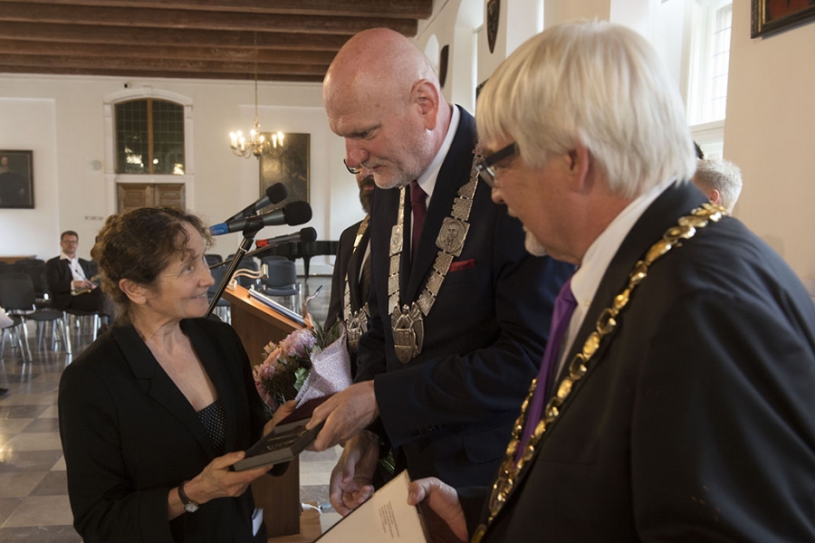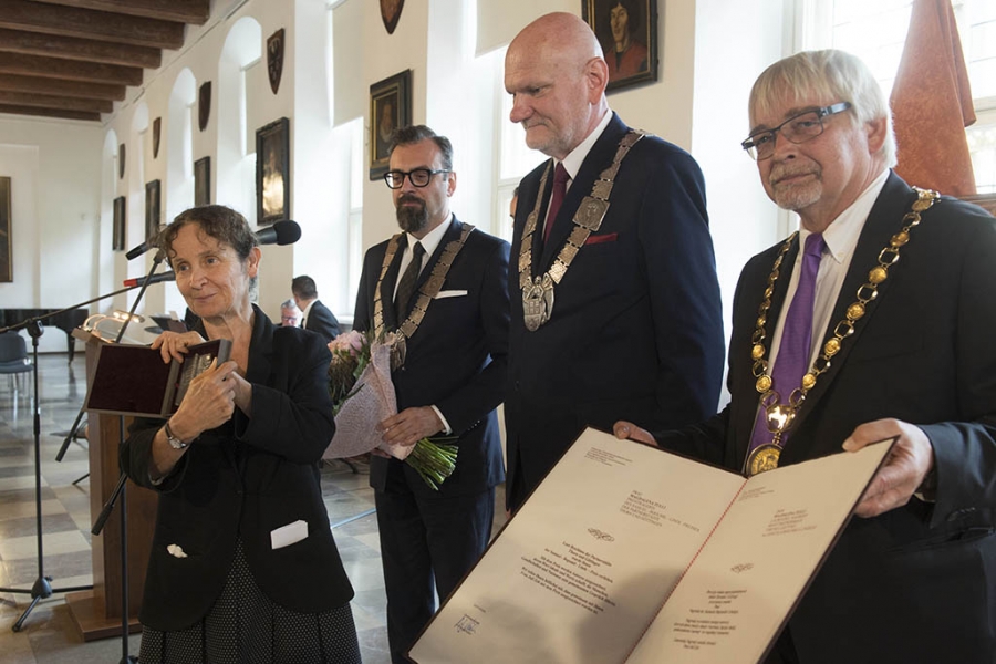 Polska pisarka Magdalena Tulli i niemiecka - Juli Zeh laureatkami Nagrody Miast Partnerskich Torunia i Getyngi im. Samuela Bogumiła Lindego. Uroczyste wręczenie polsko-niemieckiego wyróżnienia, przyznawanego od 1996 r. przez władze dwóch zaprzyjaźnionych miast Torunia i Getyngi, odbyło się 4 czerwca 2017 r. w toruńskim Ratuszu Staromiejskim. Fot. Wojtek Szabelski