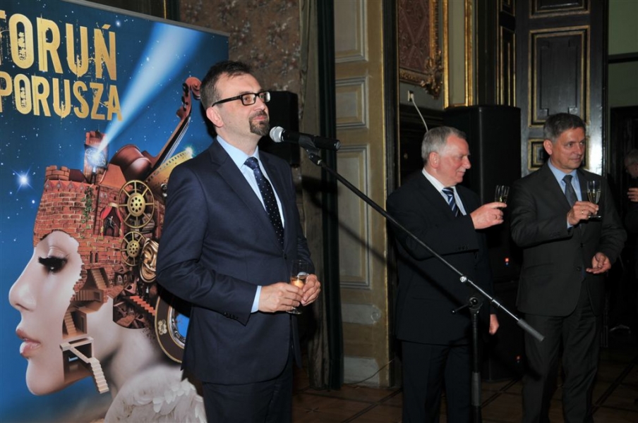 W Dworze Artusa w przeddzień Święta Miasta, 23 czerwca 2015 r., odbyła się uroczysta gala wręczenia Nagrody Prezydenta Torunia. Wyróżnieniem są honorowani zasłużeni torunianie za całokształt działalności lub dokonania w roku minionym. Tym razem prezydent Michał Zaleski przyznał nagrodę 9 osobom. Zasłużony działacz toruńskiego NOT Paweł Piotrowiak otrzymał medal Thorunium. Dla laureatów i gości uroczystości zagrał zespół Audiofeels. Fot. Małgorzata Litwin