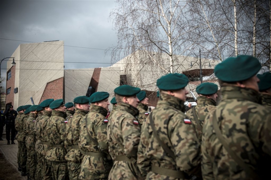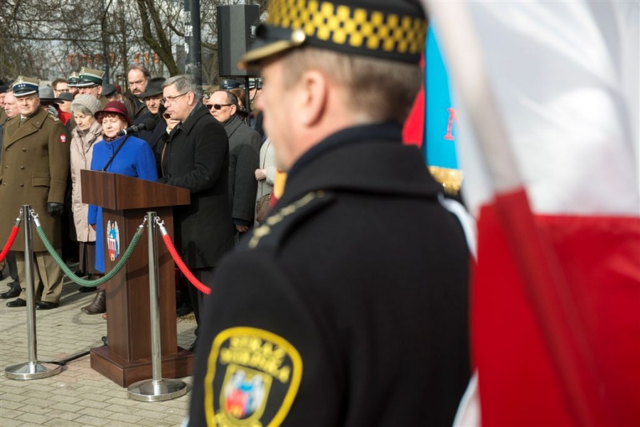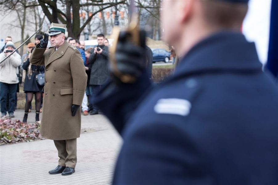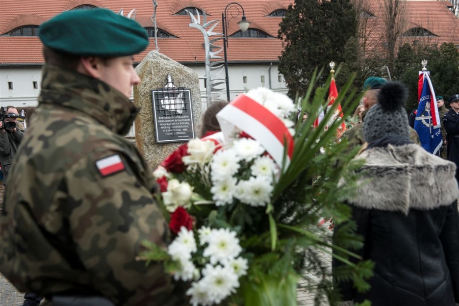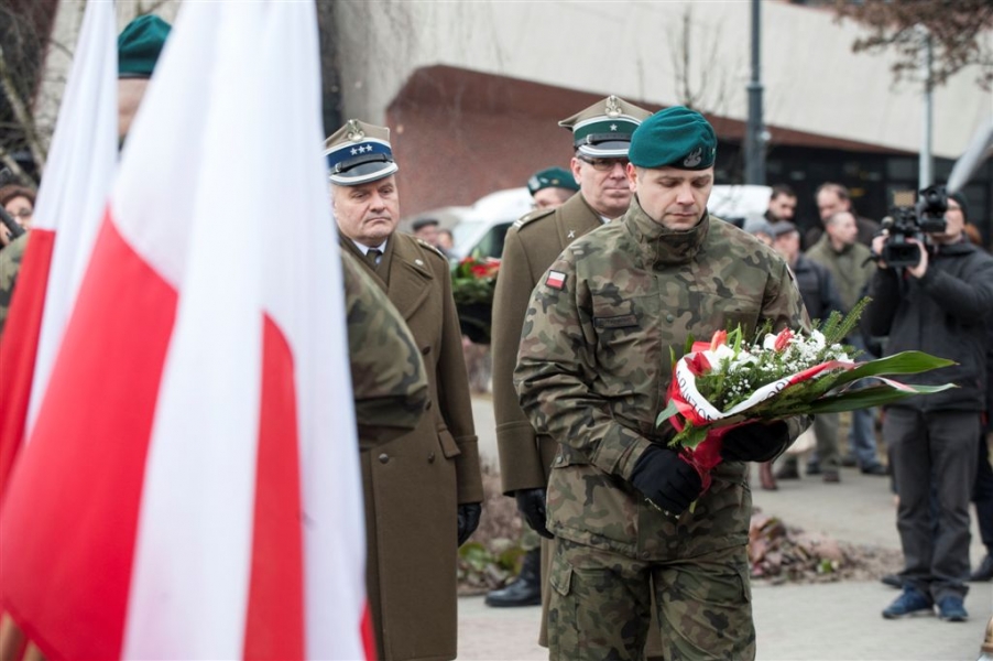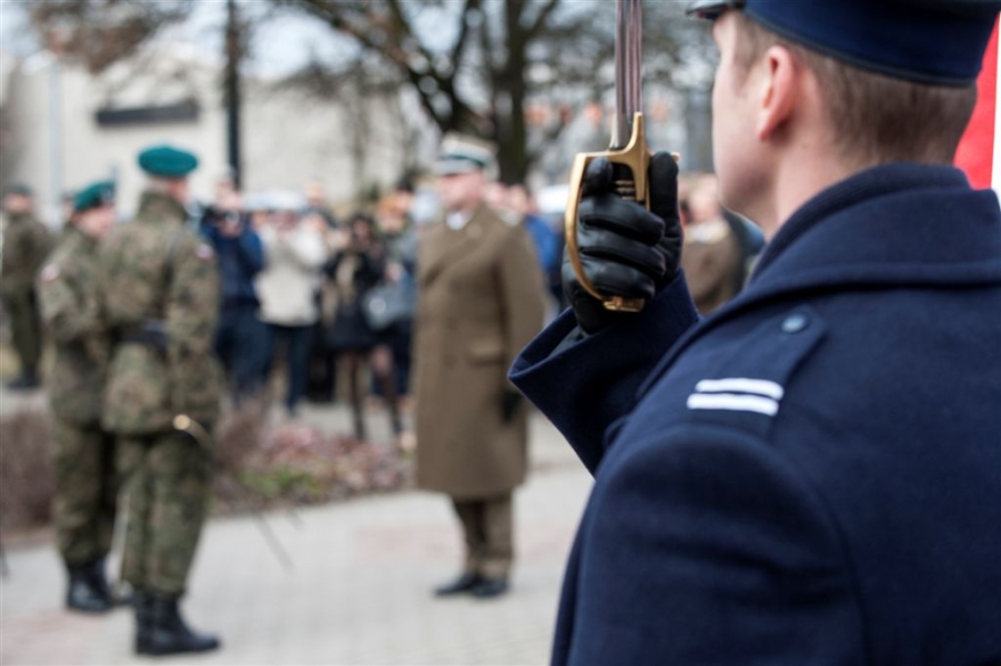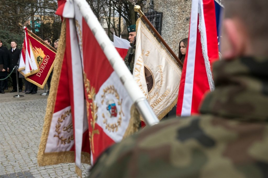 Pod pomnikiem w alei Solidarności odbyła się 1 marca 2017 r. uroczystość wojskowa z okazji Narodowego Dnia Pamięci Żołnierzy Wyklętych - kulminacyjny moment tegorocznych obchodów zorganizowanych w Toruniu dla upamiętnienia działaczy podziemia antykomunistycznego 1944-1963. Fot. Wojtek Szabelski