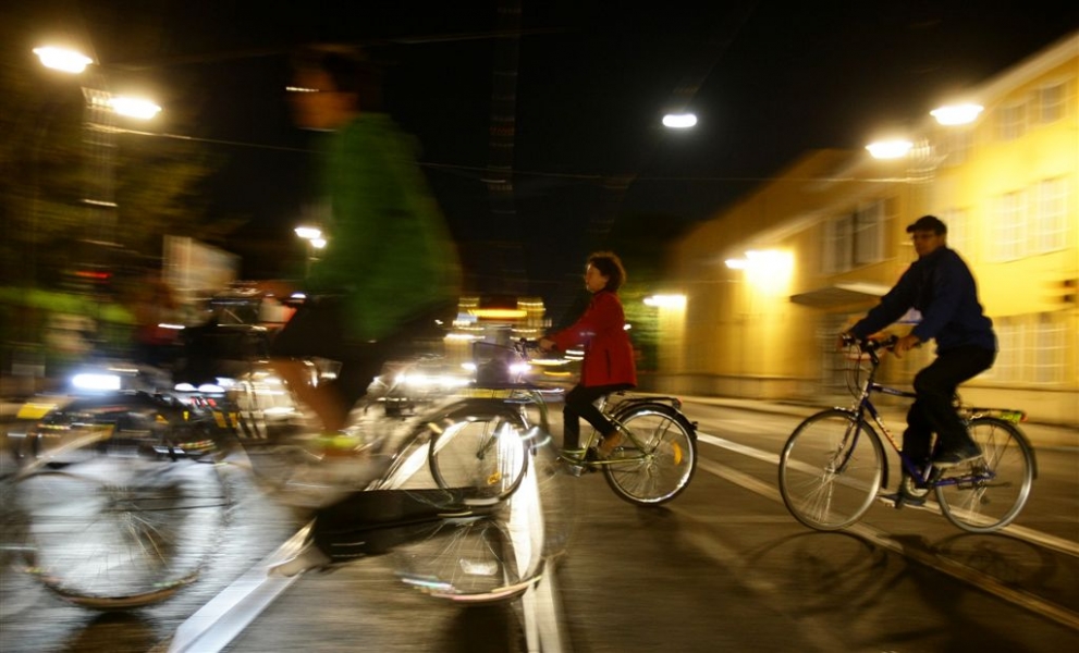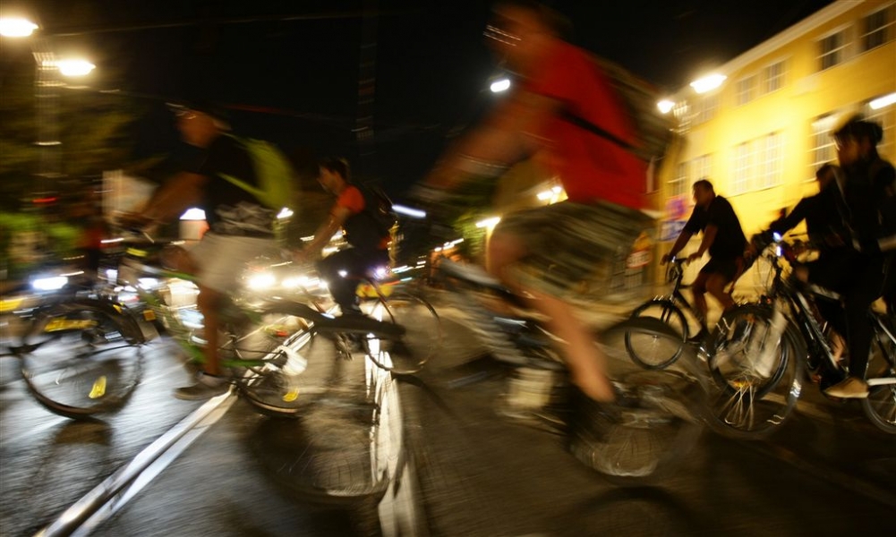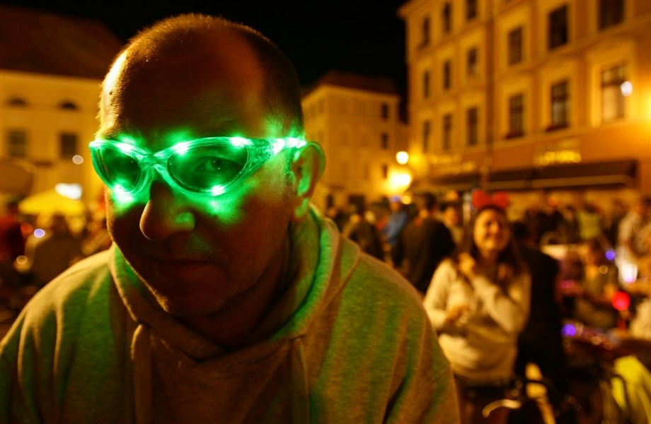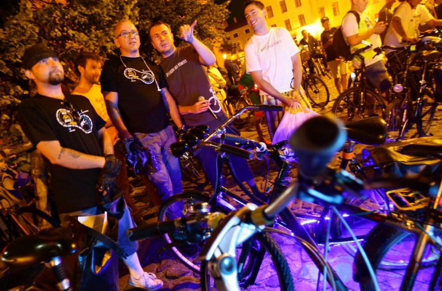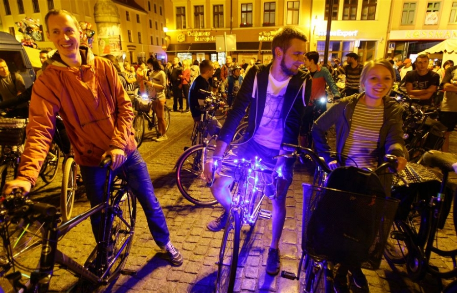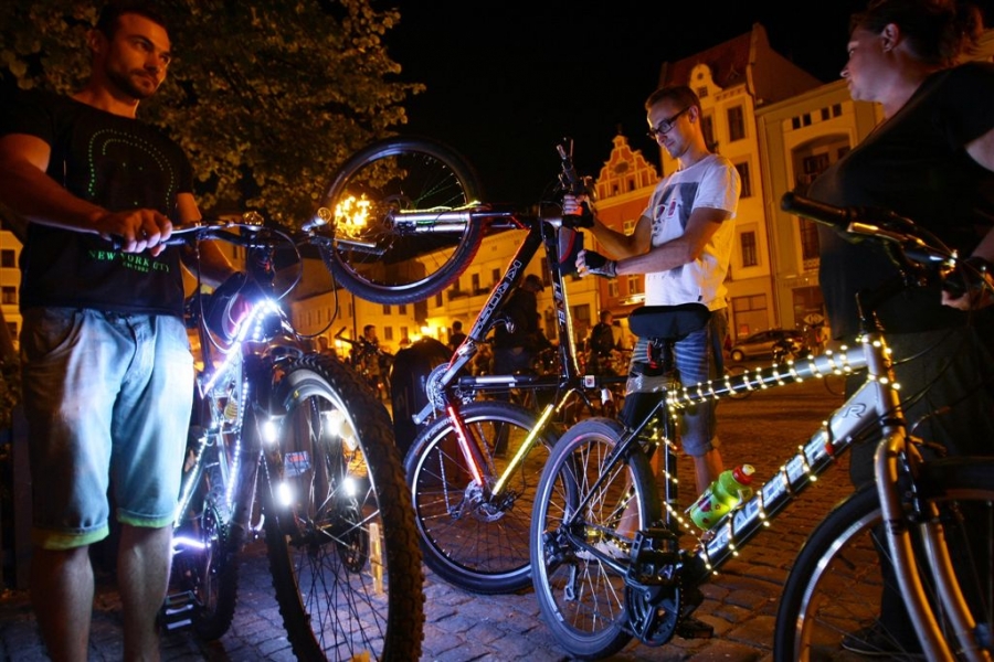 29 sierpnia 2015 r. przez Toruń przejechała rowerowa VI Świetlna Masa Krytyczna. Wydarzenie towarzyszyło tegorocznemu Bella Skyway Festival. Fot. Adam Zakrzewski