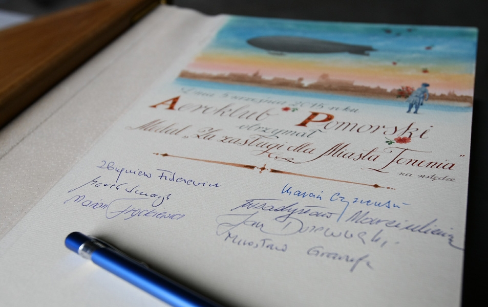 5 września 2015 r. Aeroklub Pomorski został odznaczony Medalem za Zasługi dla Miasta Torunia na wstędze. Odznaczenie zostało wręczone przez przewodniczącego Rady Miasta Torunia Marcina Czyżniewskiego podczas uroczystego spotkania z okazji 80-lecia Aeroklubu Pomorskiego. fot. Adam Zakrzewski