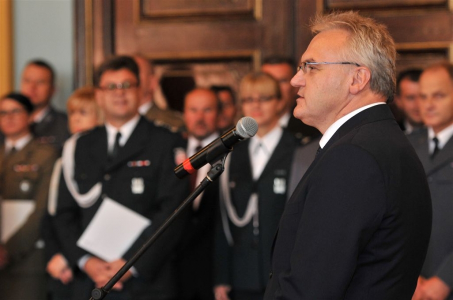 Toruńska Izba Celna obchodziła 30 września 2015 r. Dzień Służby Celnej. W katedrze została odprawiona Msza św. w intencji funkcjonariuszy celnych i pracowników korpusu służby cywilnej, a w Dworze Artusa zasłużeni funkcjonariusze celni odebrali z rąk swoich przełożonych oraz przedstawicieli rządu i samorządu odznaczenia państwowe, akty awansu na wyższe stopnie służbowe oraz nagrody okolicznościowe. Fot. Małgorzata Litwin
