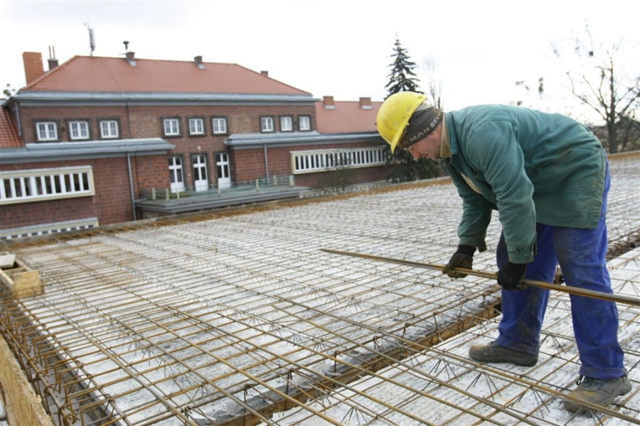 Przed zimą budowlańcy zakończyli stawianie murów i stropów nowego segmentu dydaktycznego Zespołu Szkół nr 14 w Toruniu. Szkoła powiększy się o siedem klas, wielofunkcyjną aulę, pokój nauczycielski i szatnię. Nowy segment będzie połączony z istniejącym budynkiem łącznikiem wraz z windą zewnętrzną na poziomie dwóch kondygnacji. Wykonawcą prac za 2,85 mln zł brutto jest Przedsiębiorstwo Budowlane M&K Kopczyński. Zdjęcia z listopada 2015 r. Fot. Adam Zakrzewski