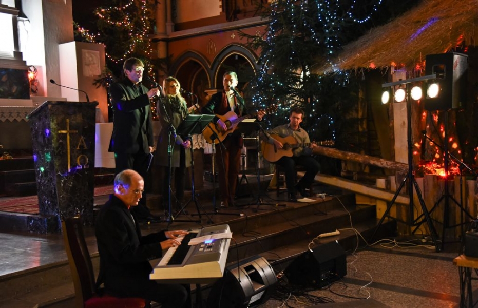 W toruńskim kościele garnizonowym 18 grudnia 2015 r. odbył się kolejny z cyklu koncert "Kolędy dla Ducha", dedykowany pamięci Stanisława Duszyńskiego, założyciela i prezesa Fundacji Ducha Na Rzecz Rehabilitacji Naturalnej Ludzi Niepełnosprawnych, który zmarł w nocy z 18 na 19 grudnia 2005 r. Wystąpili: toruński animator kultury i kompozytor Jacek Beszczyński, Katarzyna Gocajtis, Krzysztof Kwiatkowski, Andrzej Raniszewski i Krzysztof Zaremba. Fot. Lech Kamiński