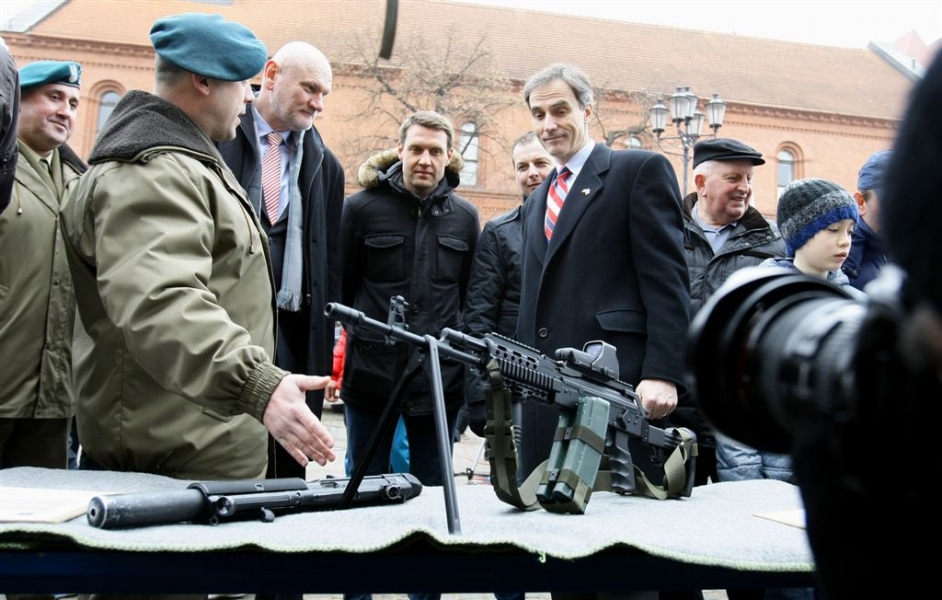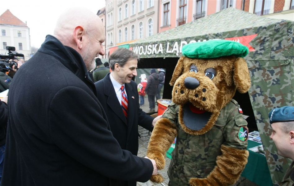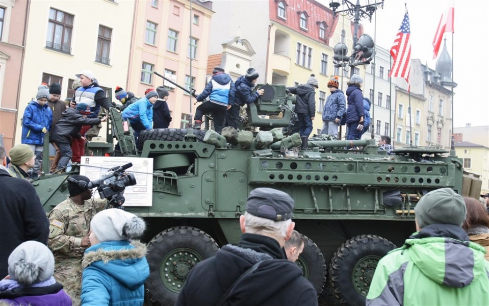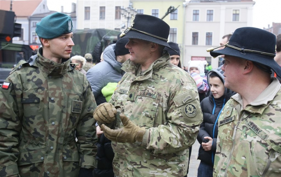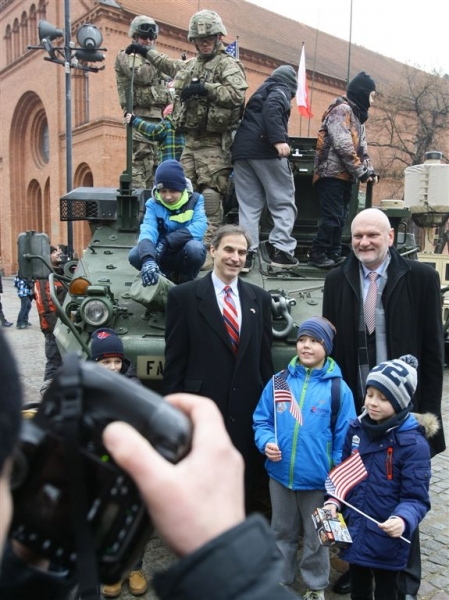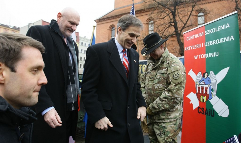 6 lutego 2016 r. w Toruniu gościł ambasador USA Paul Jones i żołnierze z sił NATO, przebywający w Polsce w ramach ćwiczeń „Dragoon Shock”. 5-13 lutego ćwiczą z użyciem artylerii na terenie Centrum Szkolenia Artylerii i Uzbrojenia w Toruniu. W sobotę, 6 lutego spotkali się z mieszkańcami Torunia na Rynku Nowomiejskim. Była okazja do obejrzenia z bliska amerykańskiego sprzętu wojskowego, w tym haubic M777, Humvee oraz pojazdów wspierających. Fot. Adam Zakrzewski