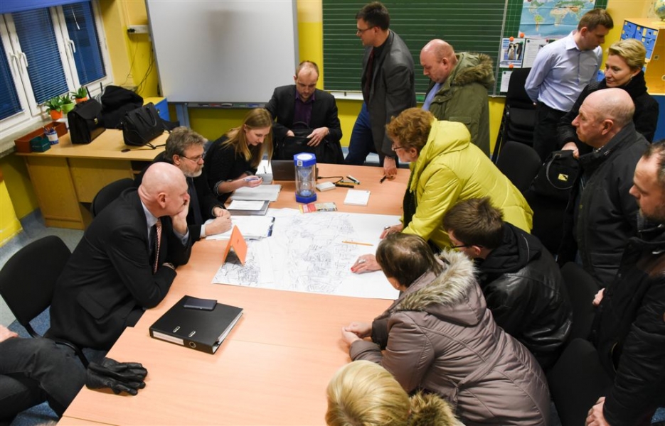 Rozpoczął się cykl dyskusji o mieście prezydenta Torunia Michała Zaleskiego z mieszkańcami wszystkich trzynastu okręgów miasta. Pierwsze spotkanie, na toruńskich Stawkach, odbyło się 17 lutego 2016 r. Nowością są w tym roku warsztaty stolikowe przed spotkaniem głównym, na których mieszkańcy mają okazję bezpośrednio porozmawiać z prezydentem o problemach osiedlowych. Fot. Lech Kamiński