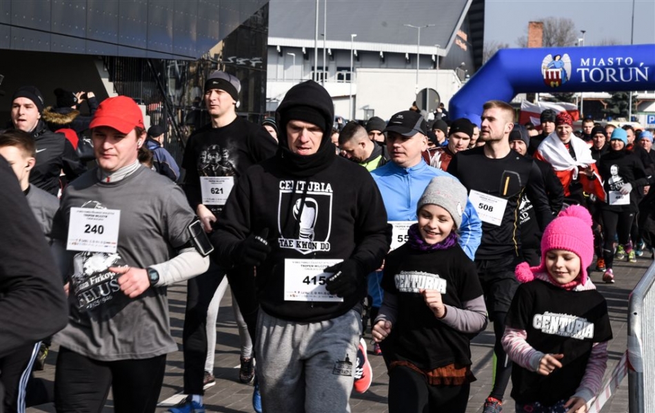 Ponad 700 osób stanęło w Toruniu na starcie niedzielnego (28 lutego 2016 r. ) Biegu Tropem Wilczym, rozegranego w lesie przy Arenie Toruń. Wydarzenie jest częścią ogólnopolskich obchodów Dnia Pamięci Żołnierzy Wyklętych, przypadającego 1 marca. Biegowi towarzyszyły: inscenizacja historyczna, okolicznościowa wystawa i występ zespołu "Podgórski walczyk". Fot. Lech Kamiński
