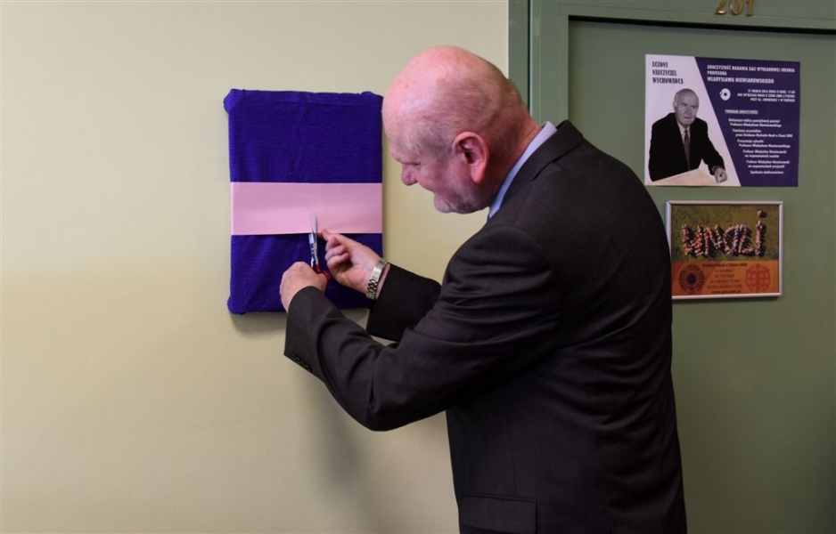 Imię prof. Władysława Niewiarowskiego, zmarłego w 2015 r. wybitnego geografa i geomorfologa, specjalisty w zakresie badań stratygrafii i paleogeografii czwartorzędu nosi od 31 marca 2016 r. sala 201 budynku Wydziału Nauk o Ziemi UMK przy ul. Lwowskiej 1. Odsłonięcia tablicy pamiątkowej dokonali: córka - Bożena Niewiarowska-Miler, prezydent Torunia - Michał Zaleski - niegdyś student profesora, dziekan Wydziału - profesor Wojciech Wysota oraz kierownik Katedry Geomorfologii i Paleogeografii Czwartorzędu - prof. Leon Andrzejewski. Fot. Lech Kamiński