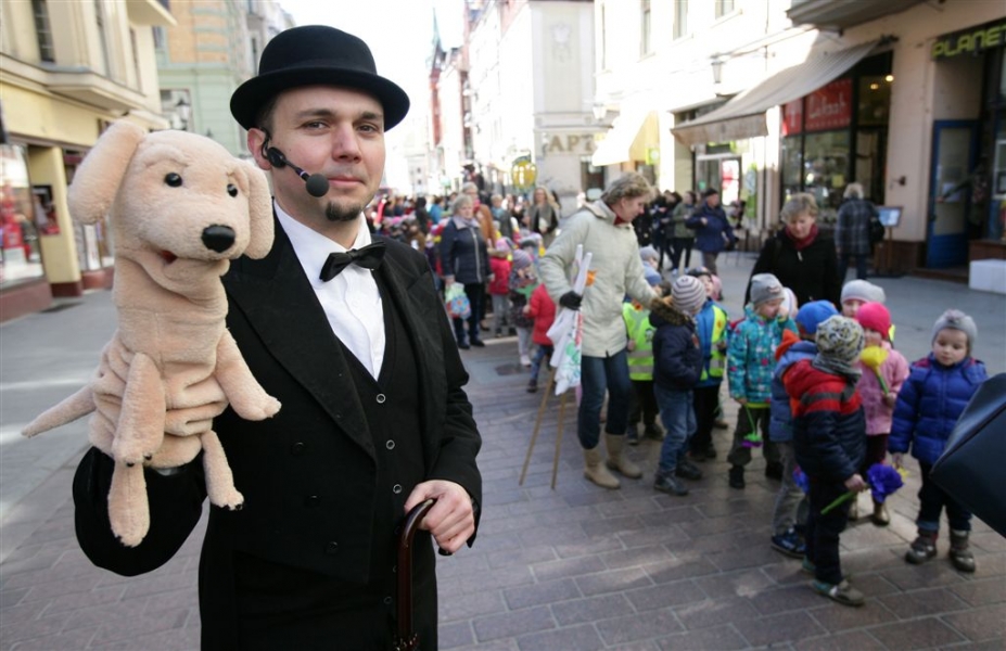 "Profesor Filutek z Filusiem do pary odwiedzają ulicę Wielkie Garbary’" - pod tym hasłem obchodziliśmy w piątek, 1 kwietnia 2016 r. święto ulicy Wielkie Garbary oraz imieniny Zbigniewa Lengrena, rysownika, twórcy komiksowej postaci profesora Filutka i psa Filusia. Imprezę zorganizowało Biuro Toruńskiego Centrum Miasta we współpracy ze Szkołą Podstawową nr 1 w Toruniu i aktorami Baja Pomorskiego. Fot. Adam Zakrzewski